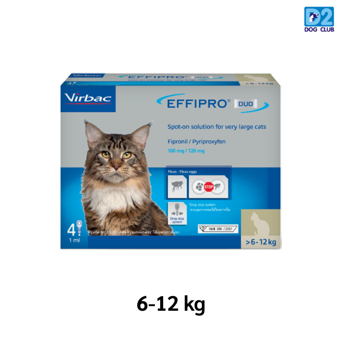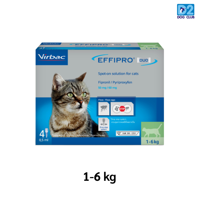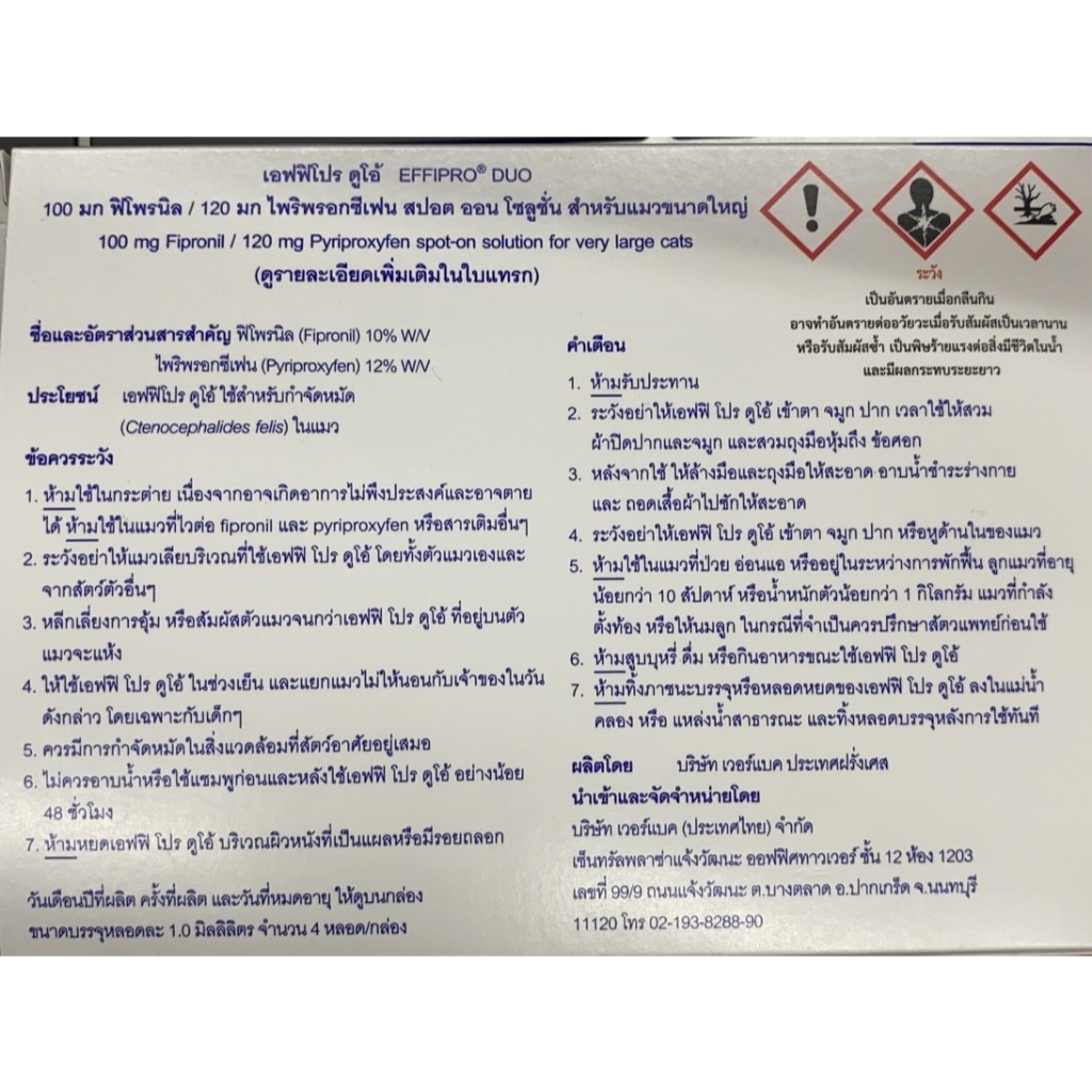 EFFIPRO DUO Spot-on Solution for cats ยาหยอดแมว เห็บ หมัด แมว สำหรับแมว บรรจุ 4 หลอด 1 กล่อง