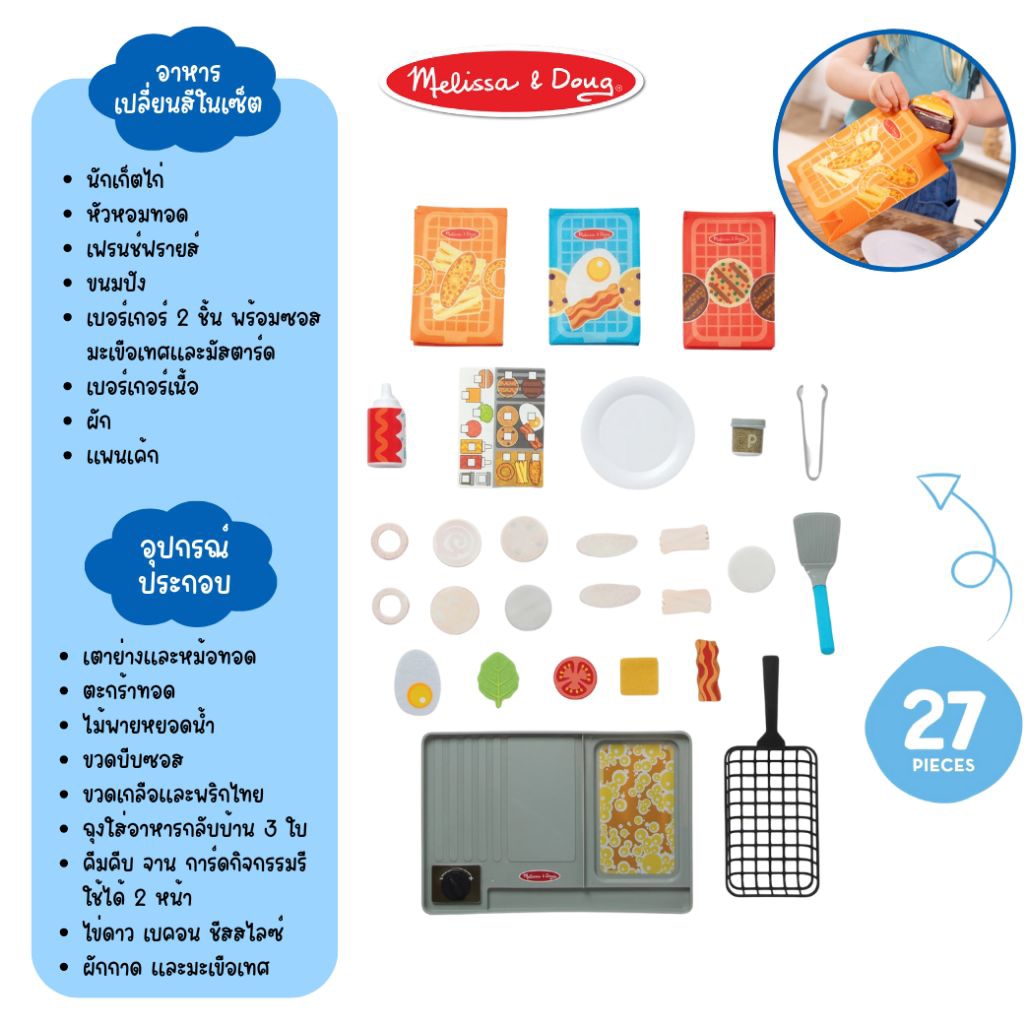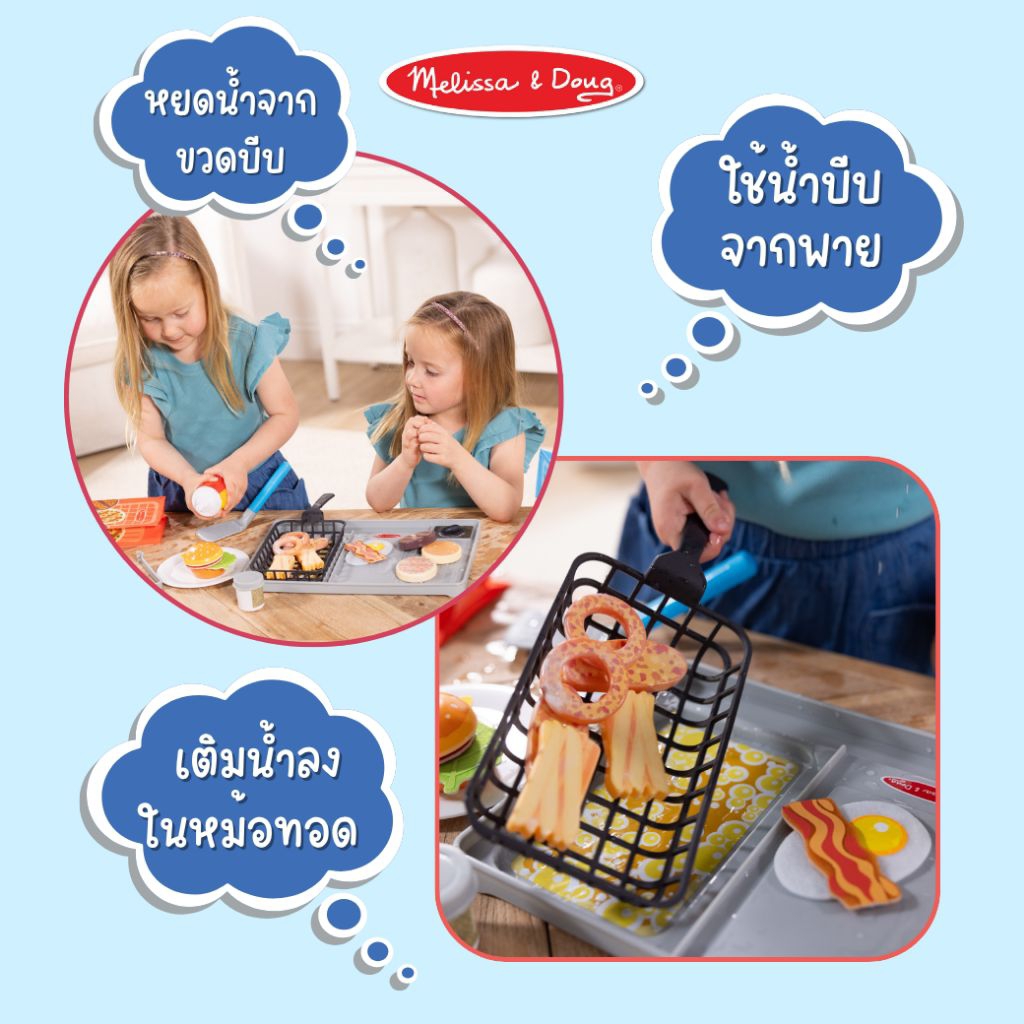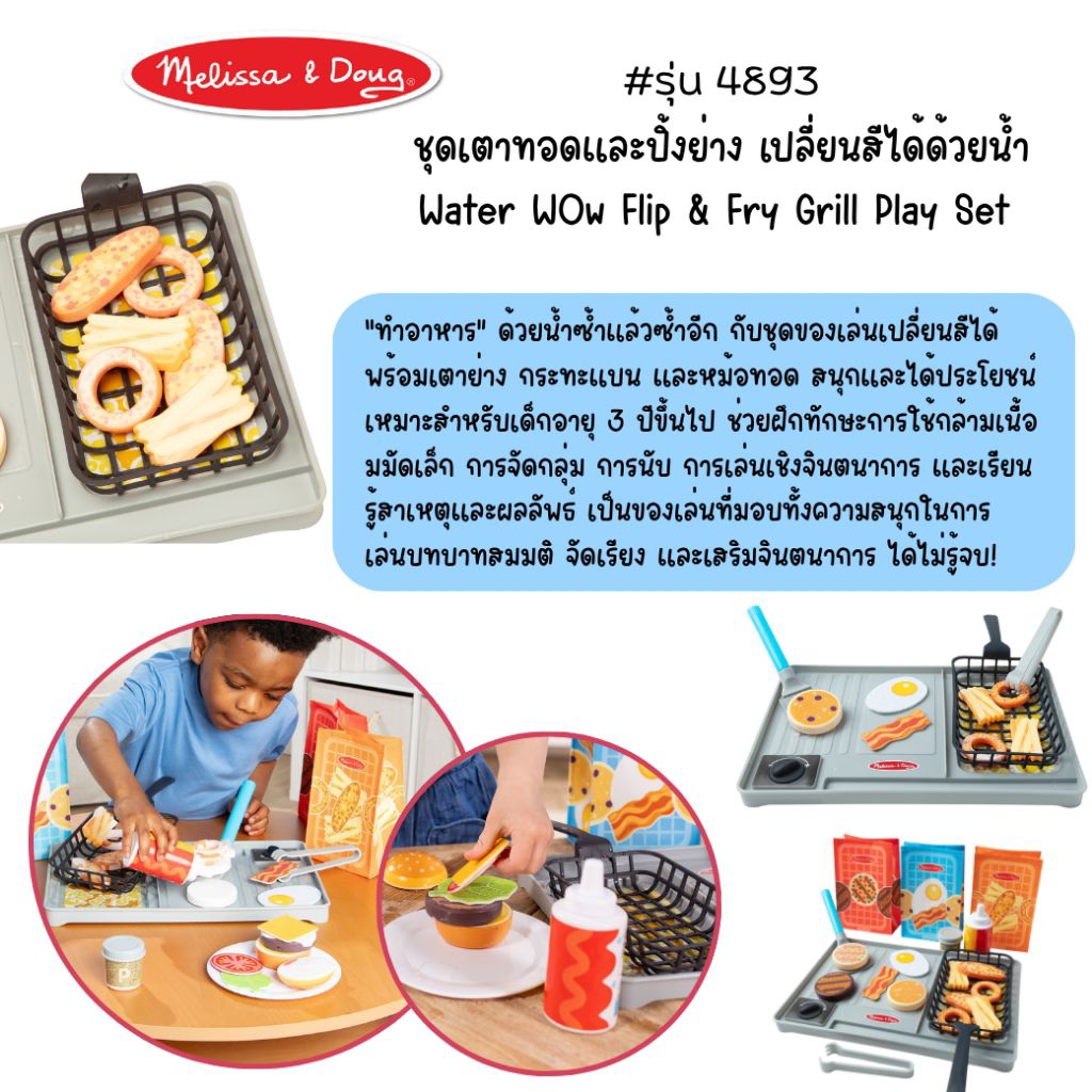 Melissa & Doug Flip & Fry Grill Play Set ทำอาหารเปลี่ยนสี ชุดเตาทอดปิ้งย่าง พร้อมตะหลิวปล่อยน้ำ รียูสซาเบิล – รุ่น50291