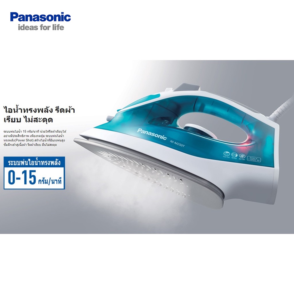 Panasonic เตารีดไอน้ำ กำลังไฟฟ้า 1,550 วัตต์ พร้อมแผ่นเคลือบผิว Titanium รุ่น NI-M250TGSF (สีเขียว)