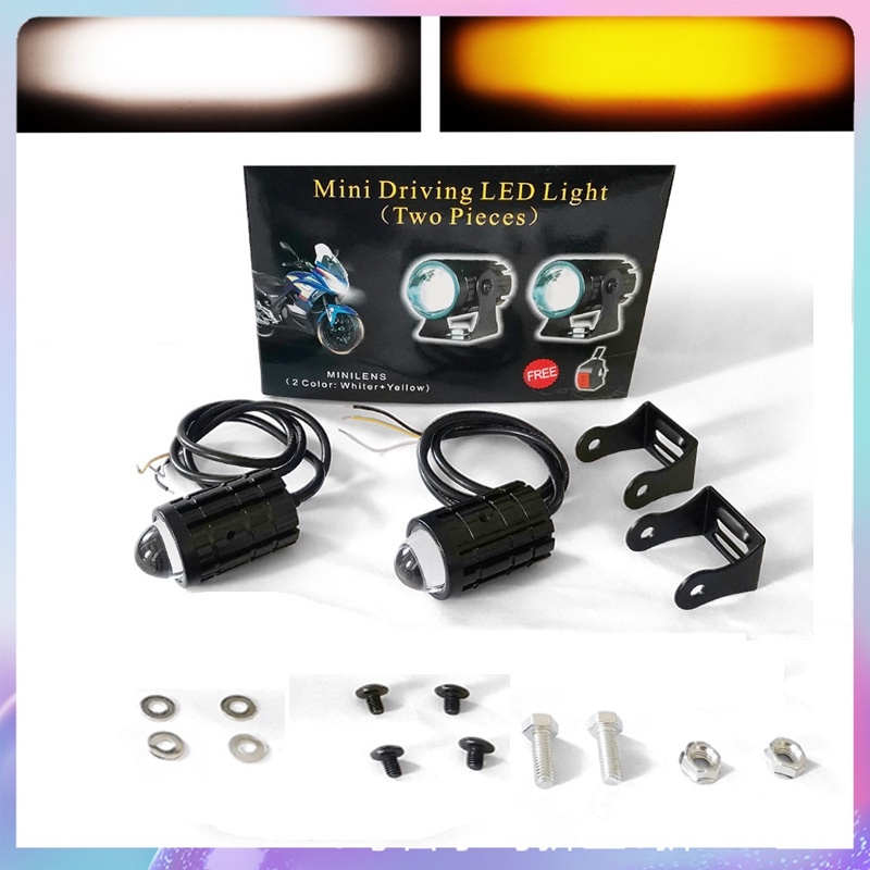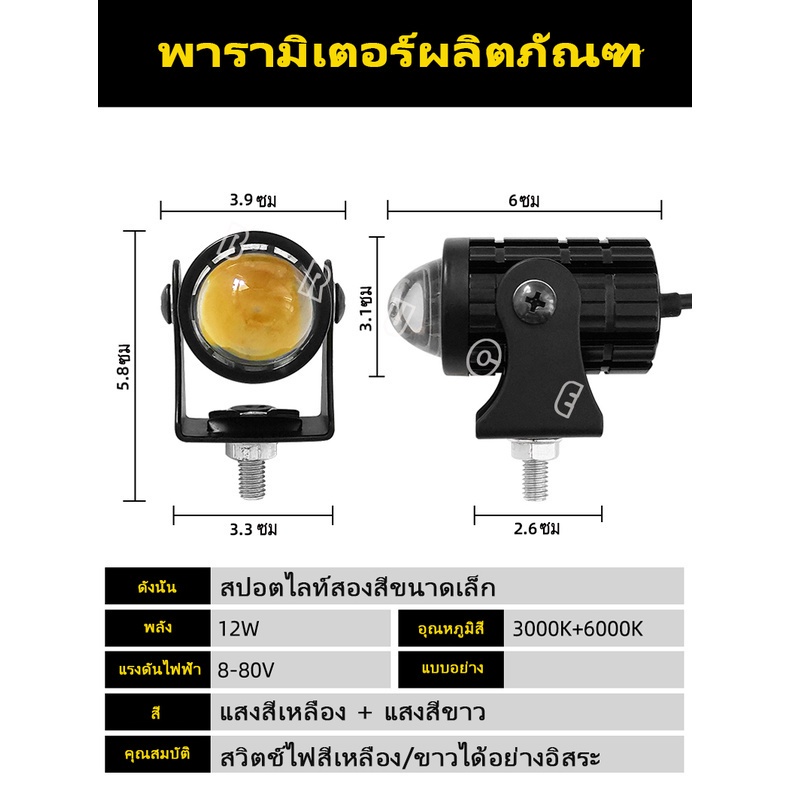 สีขาวสีเหลืองสองสีรถจักรยานยนต์ LED ไฟหน้าเลนส์ สปอตไลท์สองสีไฟมอเตอร์ไซค์ไฟสปอร์ตไลท