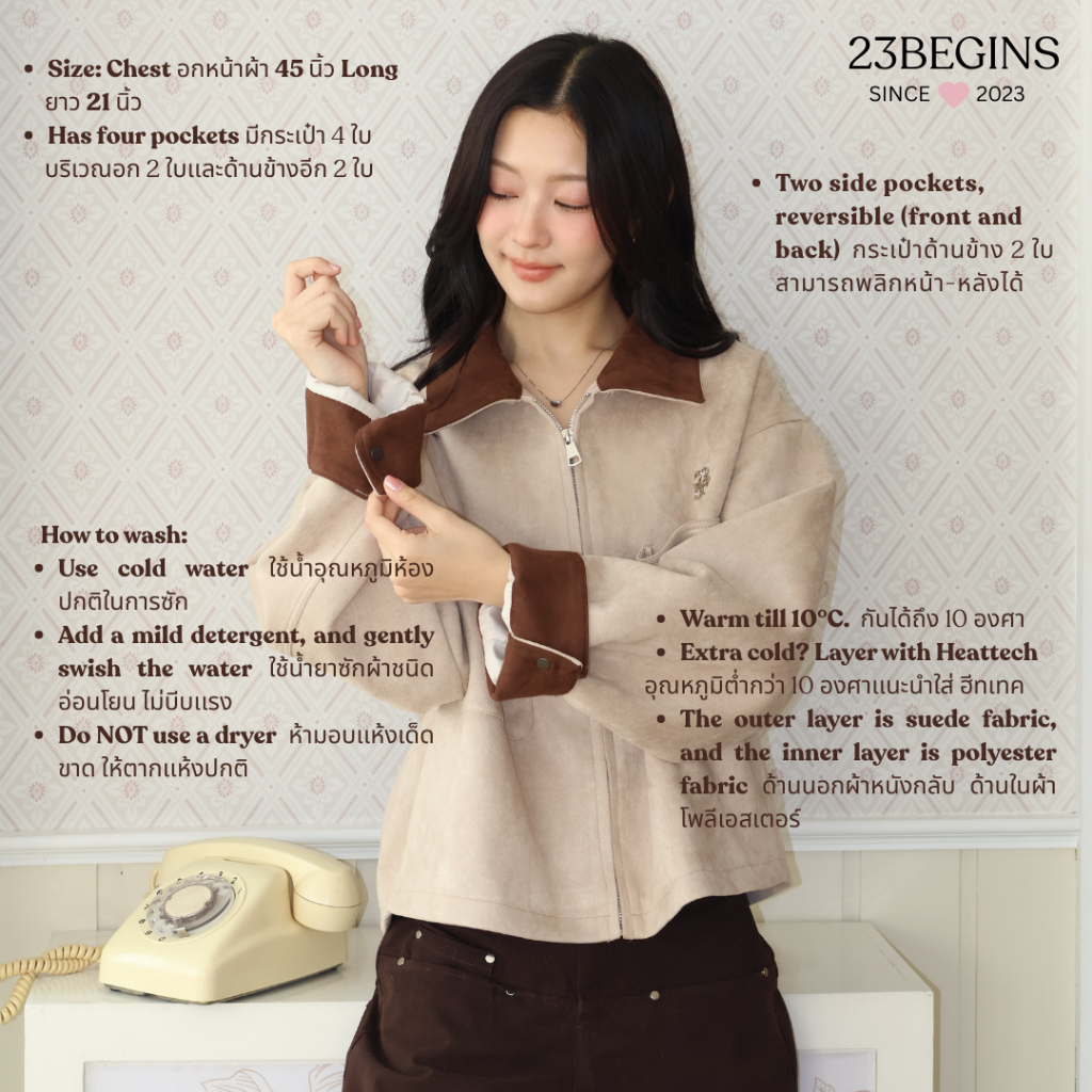 (Pre บางสี) Suede Jacket เสื้อแจ็กเกตหนังกลับ (3523)
