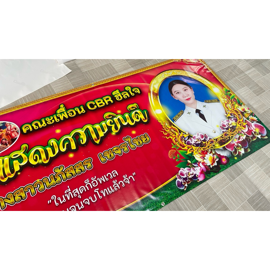 ป้ายไวนิล ป้ายยินดีต้อนรับ ยินดี ขอแสดงความยินดี (สามารถแก้ไขชื่อร้านทักแชทนะคะ)