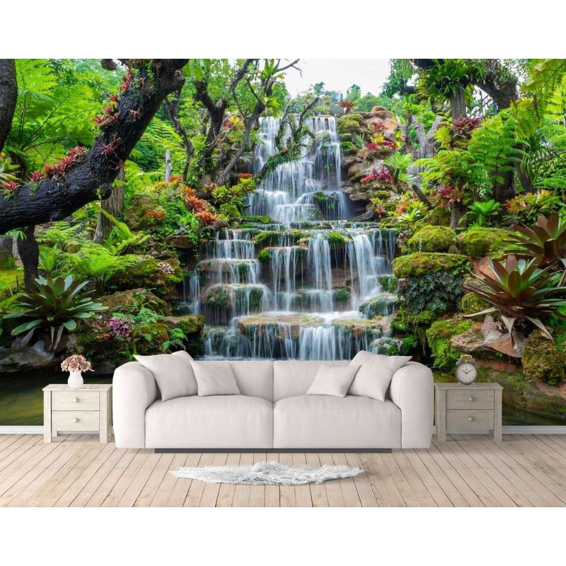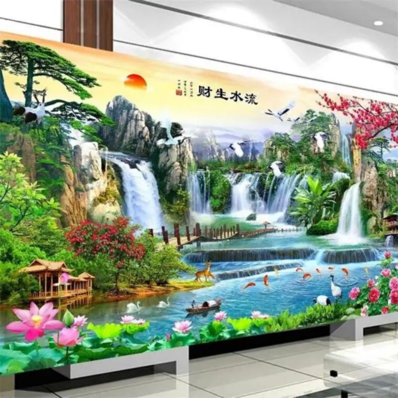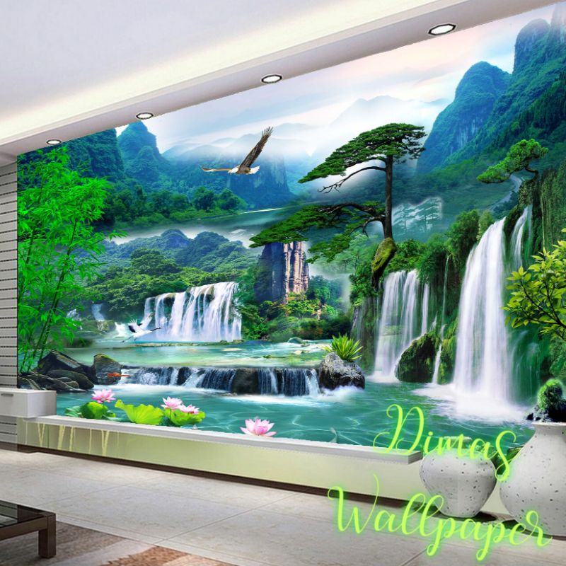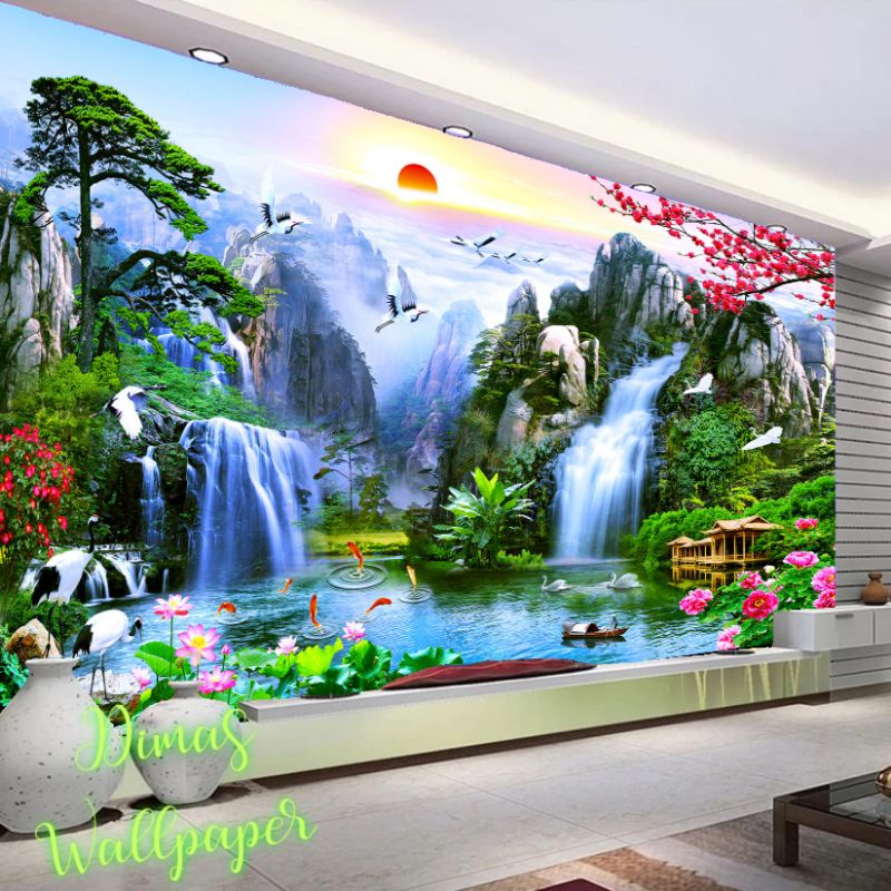 ที่กําหนดเองวอลล์เปเปอร์ติดด้วยตนเองภาพจิตรกรรมฝาผนัง3งทิวทัศน์ธรรมชาติที่ทันสมัยน้ําตกโลตัสภาพจิตรกรรมฝาผนังห้องนั่งเล่นโซฟาทีวีพื้นหลังผนังตกแต่งบ้านสติก