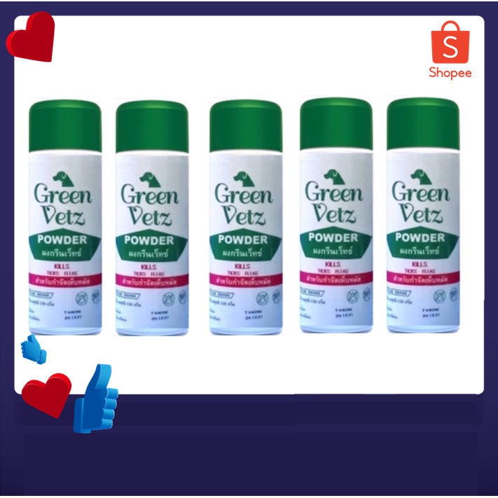 5 กระป๋อง Green Vetz ผงโรยตัวสุนัข แป้งกำจัดเห็บ หมัด สุนัข (150 g)