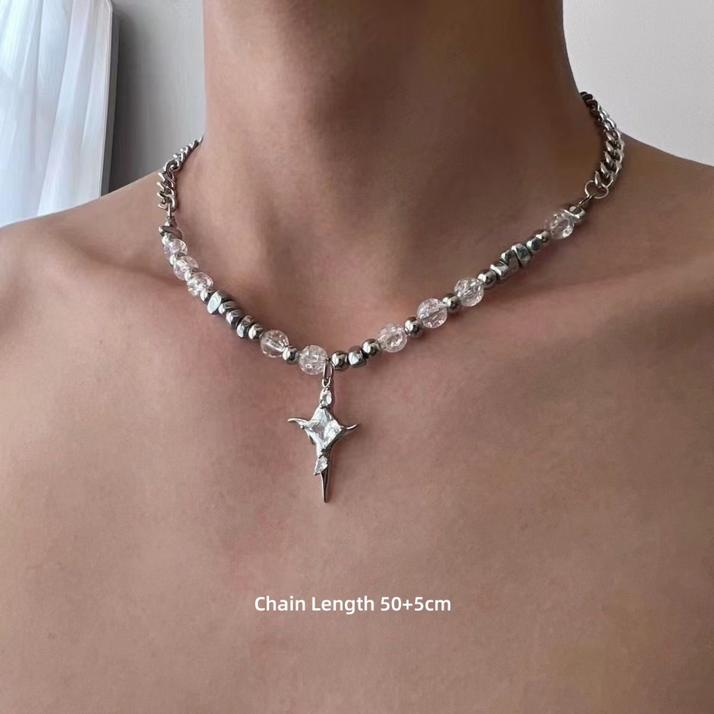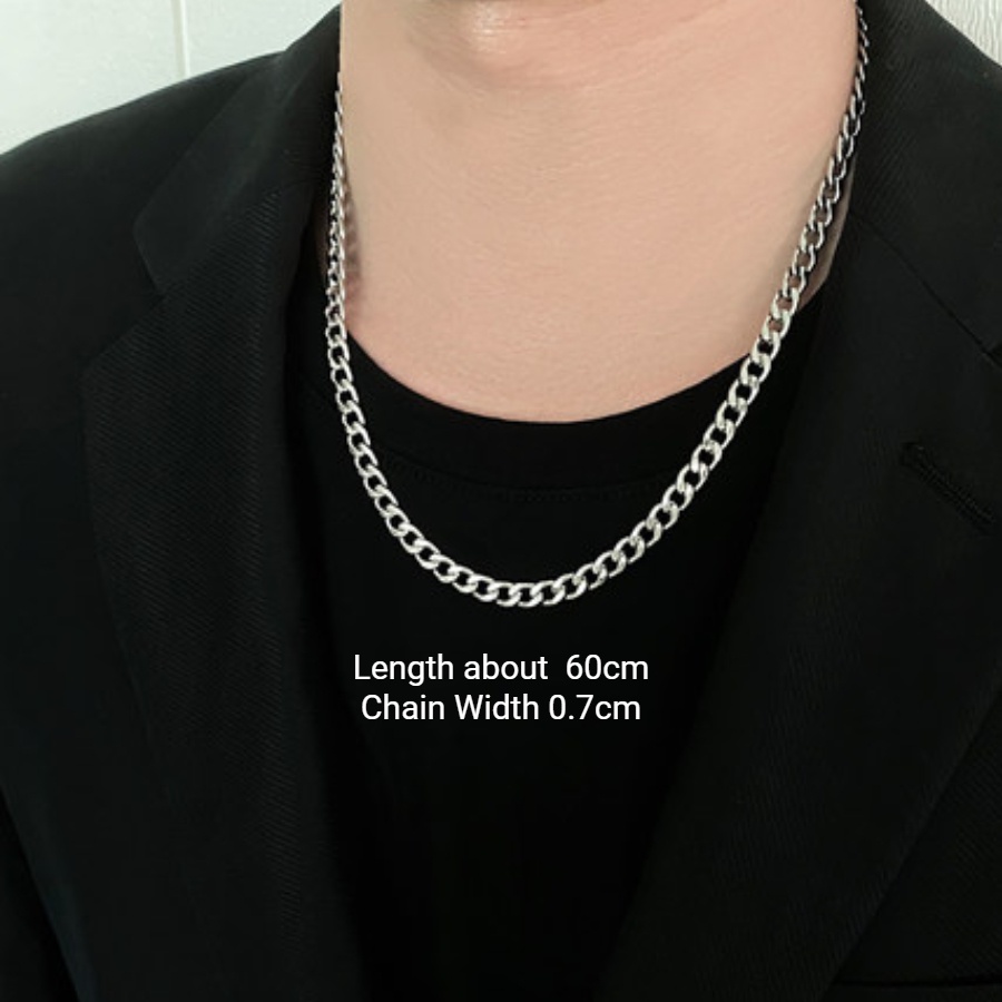 Non Tarnish สแตนเลสผู้ชายสร้อยคอ Cuba Chain Cross แหวนจี้เงินสร้อยคอยาวสําหรับชาย 001