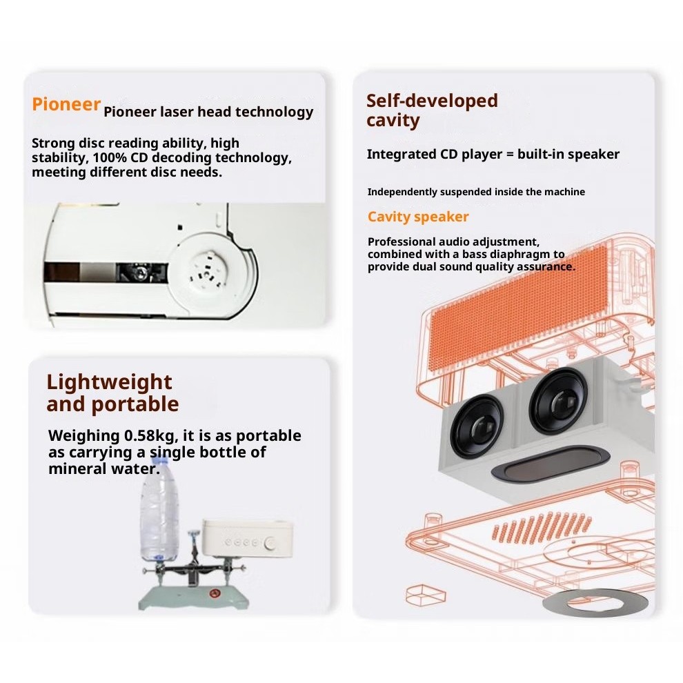 เครื่องเล่นซีดี WhatPlus C1 แสงโดยรอบแบบ InS เครื่องเล่นซีดีการเชื่อมต่ออัจฉริยะ เครื่องเล่นเสียงบลูทูธ