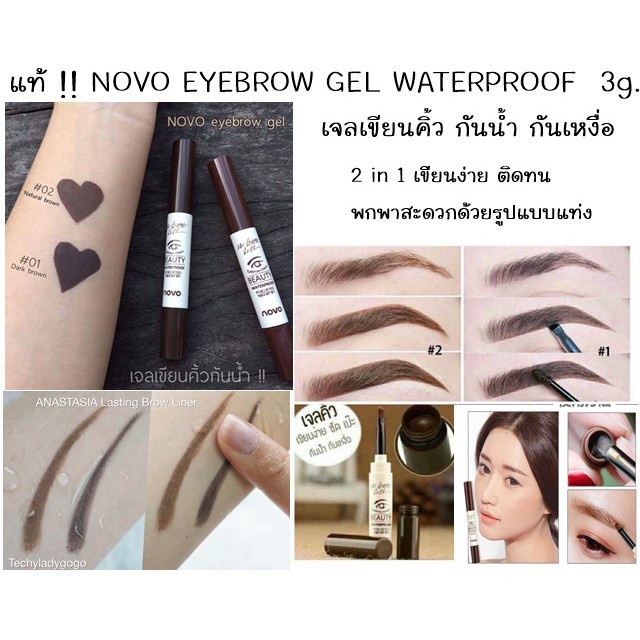 Hot เจลเขียนคิ้ว กันน้ำ NOVO BEAUTY EYEBROW GEL 3g ดินสอเขียนคิ้ว (3สี/ของแท้/พร้อมส่ง)