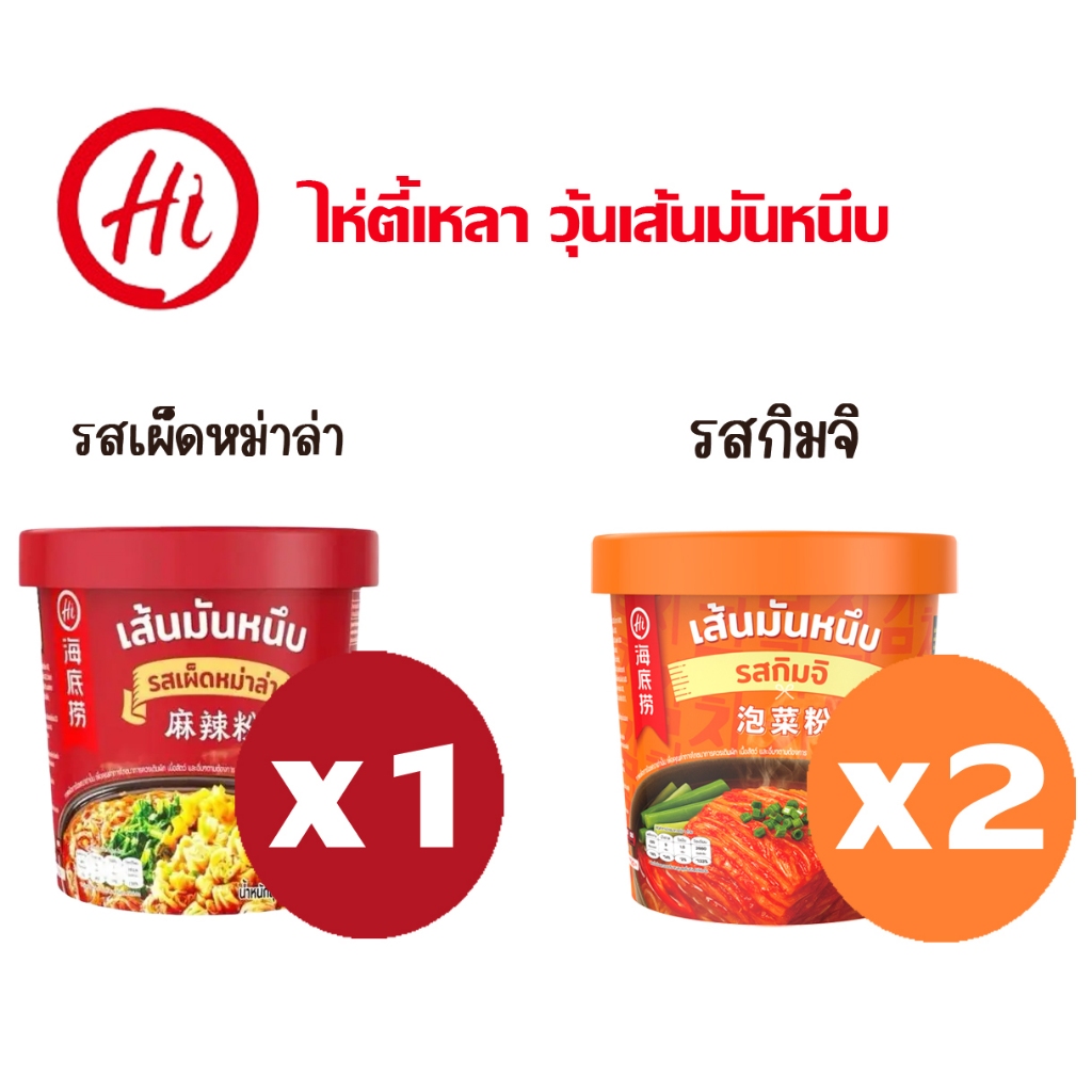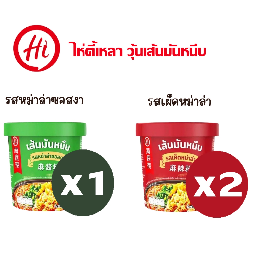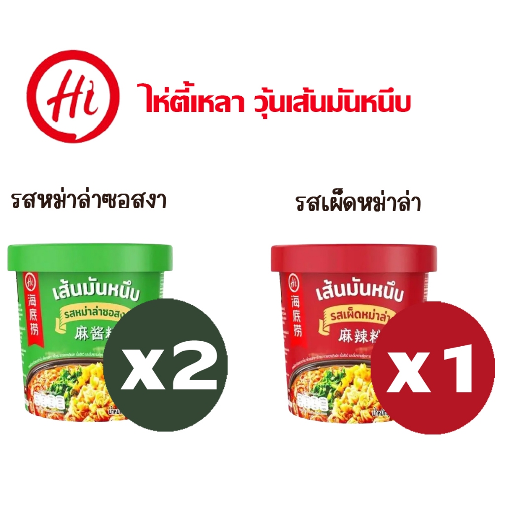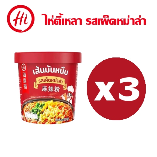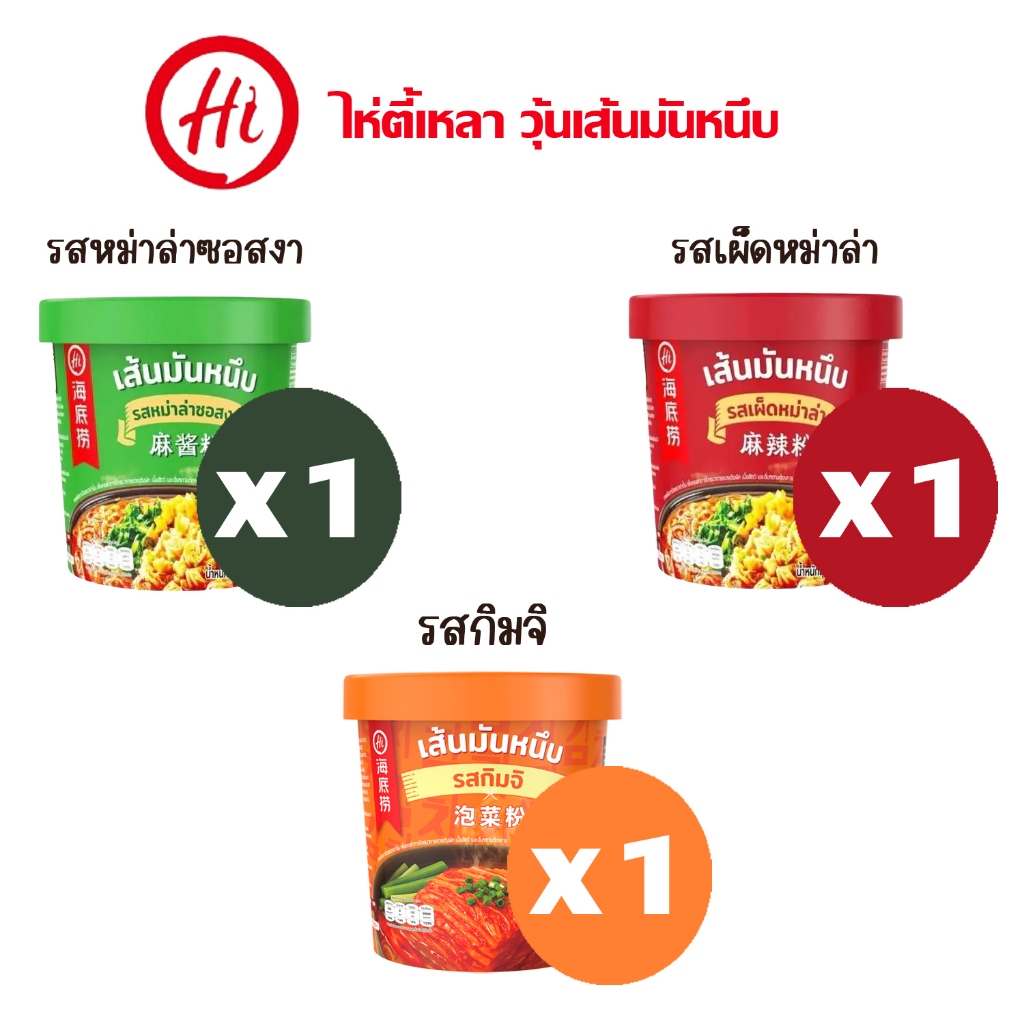 [3 คัพ] ไห่ตี้เหลา วุ้นเส้นมันหนึบกึ่งสำเร็จรูป โปร 3 คัพ (รสเผ็ดหม่าล่า, รสหม่าล่าซอสงา, รสกิมจิ)