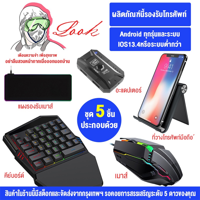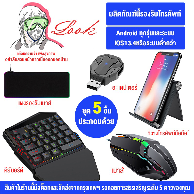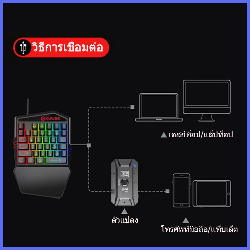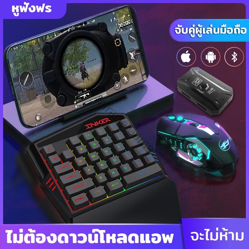 คีย์บอร์ดมือเดียว คีย์บอร์ดเกมมิ่ง Pubg/Freefire คีย์บอร์ดมือถือ Gaming Keyboard การเชื่อมต่อบลูทูธ เล็งอัตโนมัติ