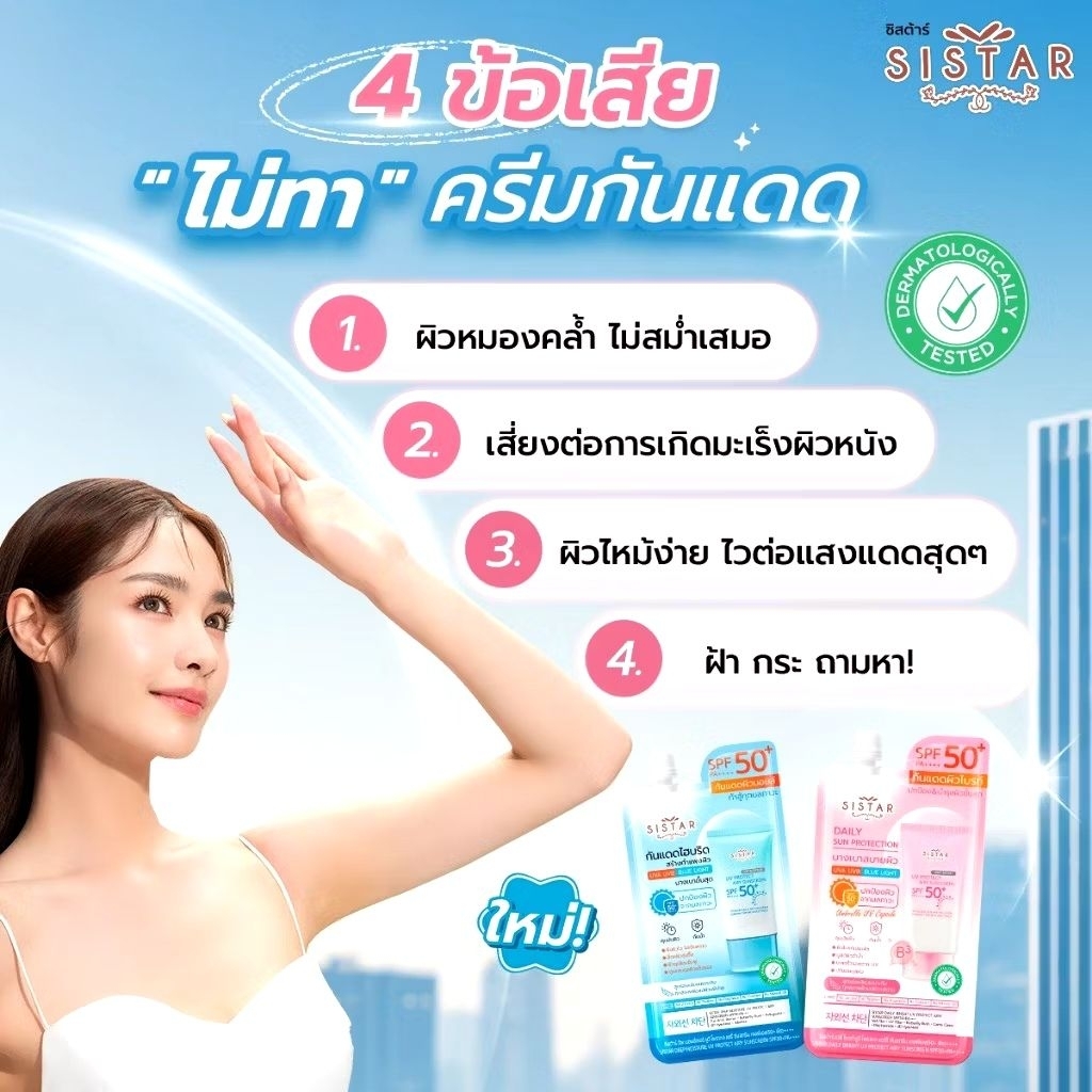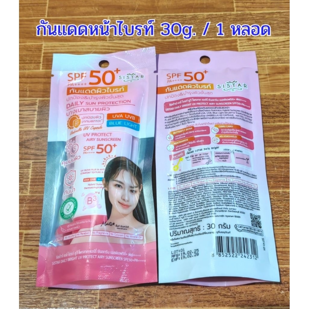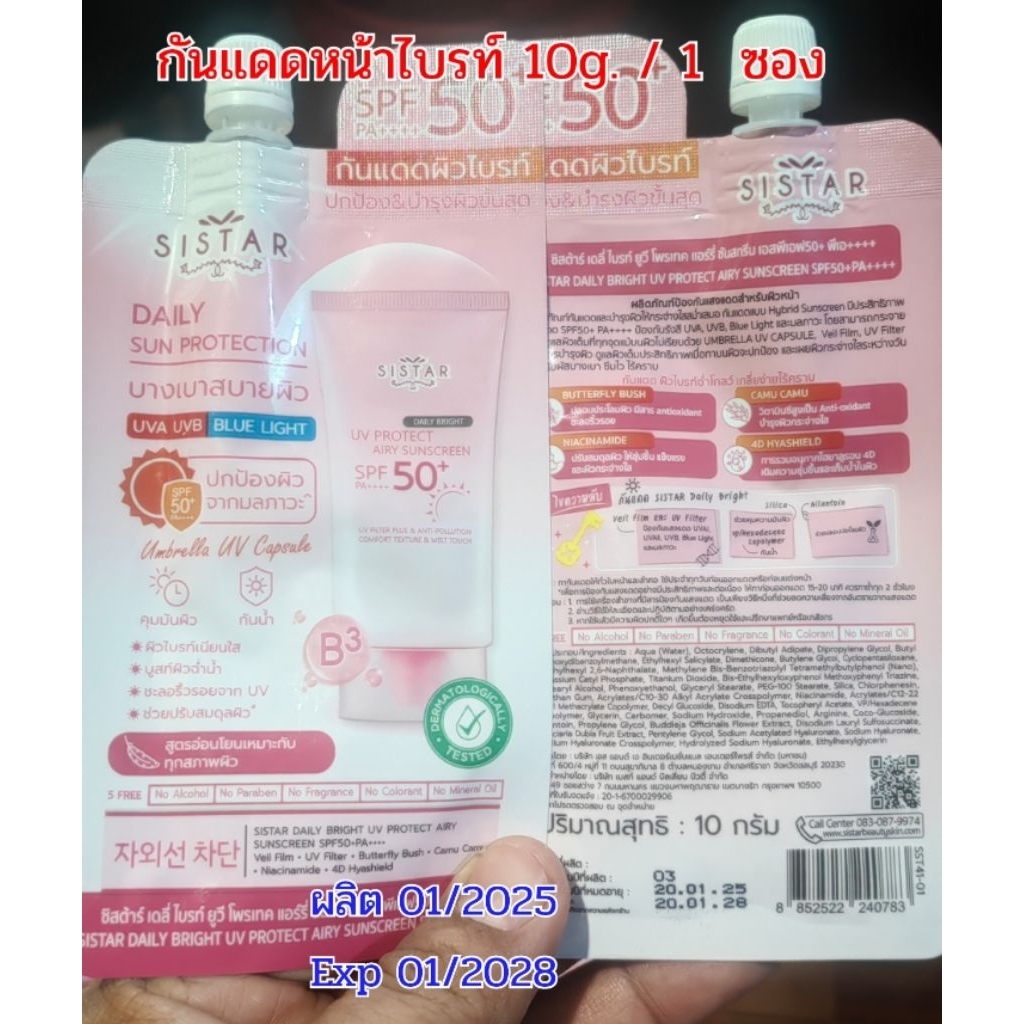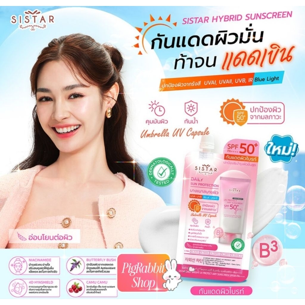 PigRabbitShop💦Sistar ซิสต้าร์ กันแดด ยูวี โพรเทค ซันสกรีน Daily Bright UV Protect Airy Sunscreen SPF50+ PA+++ 10g/30g