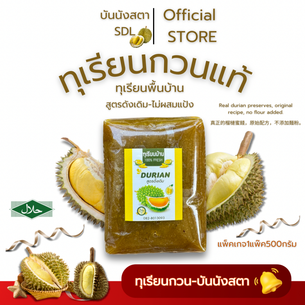 ทุเรียนกวนแท้ ไม่ผสมแป้ง ขนาด 500กรัม 2ชิ้น 1000กรัม กวนสดเองทุกวัน ไม่ผสมแป้ง หวานพอดี ไม่หวานมาก เหมาะเป็นของทางเล่น