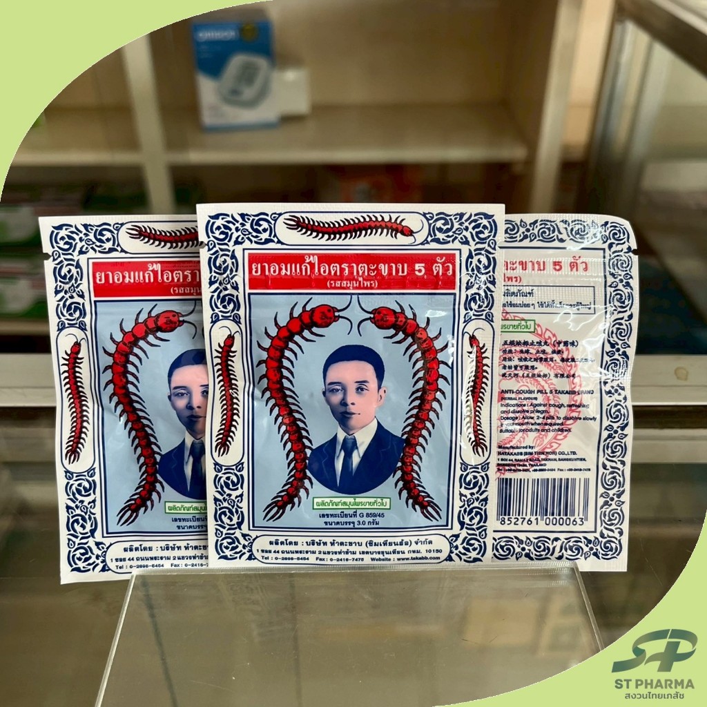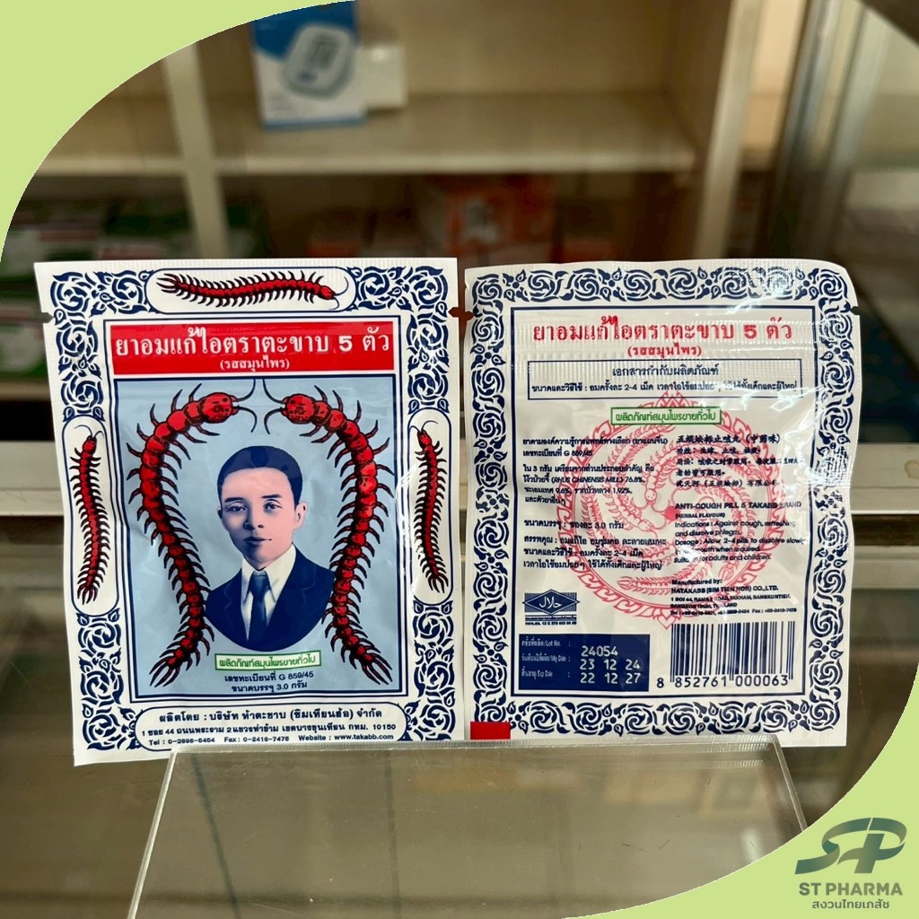 [TAKABB] แบ่งขาย 6/12 ซอง ยาอมแก้ไอตราตะขาบ 5 ตัว แบบซอง Exp 03/28