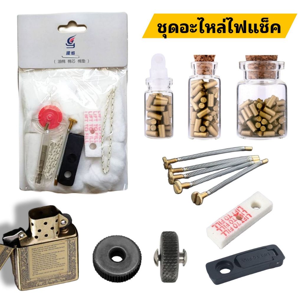 ชุดซ่อมไฟแช็คน้ำมัน ทรงซิปโป้ อะไ หล่ครบชุด ถ่าน เชือกเรยอน สปริงดันถ่าน ยางปิดตูด ผ้าปิดตู