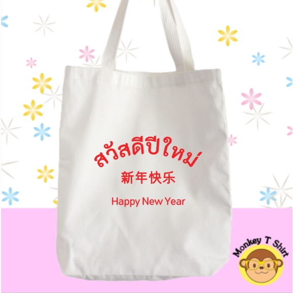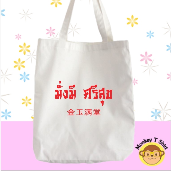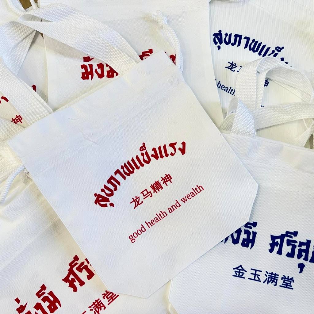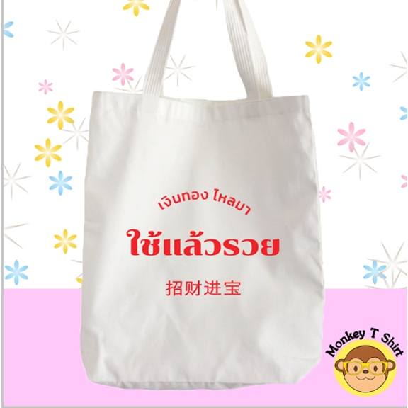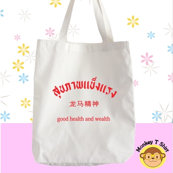 กระเป๋าผ้า ถุงผ้า ลาย คำอวยพร ผ้าไม่บาง ไม่เหลือง