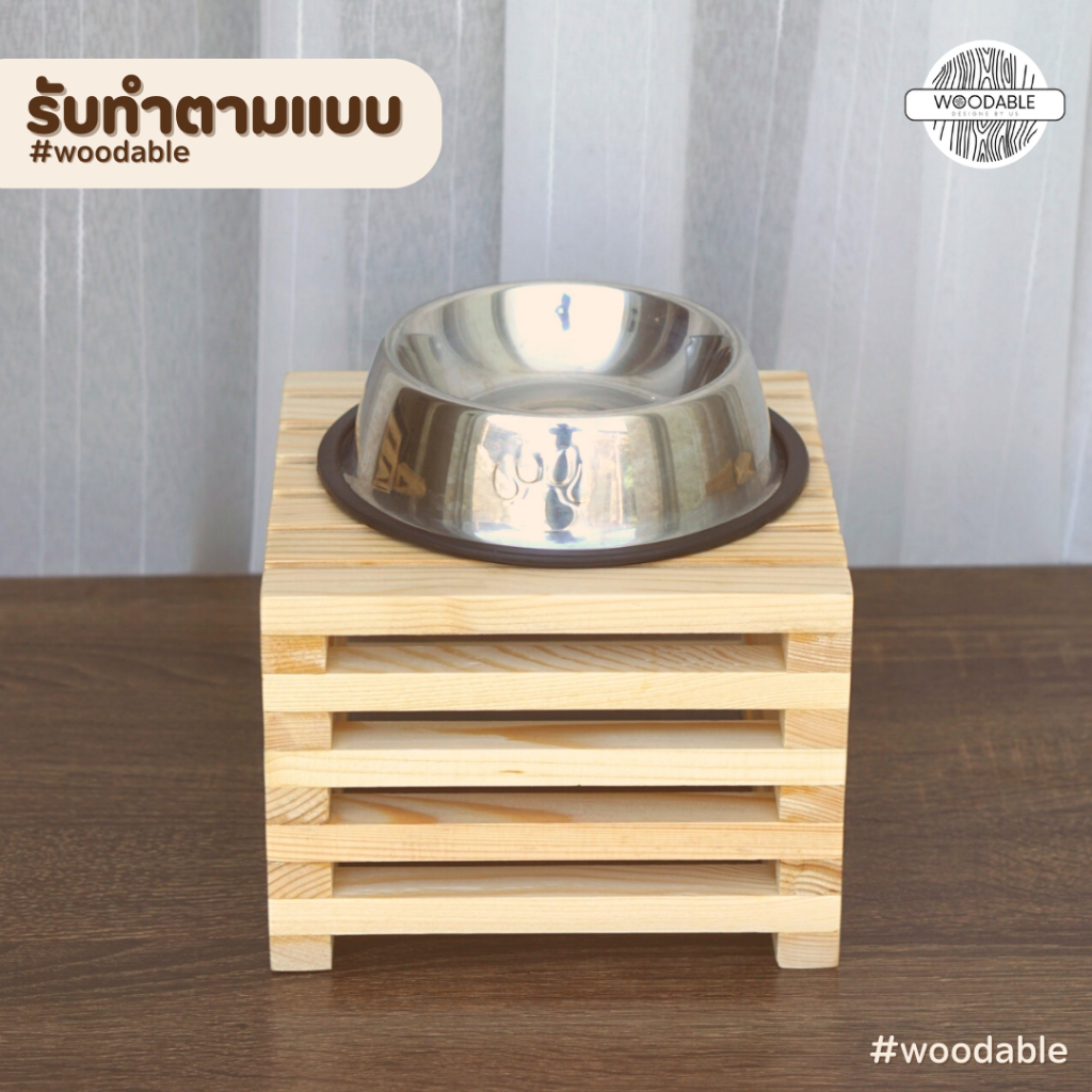 |รับทำตามแบบ| ชั้นไม้อเนกประสงค์ วางชามข้าวแมว ขนาด W7 x L7 x H5 นิ้ว,วางน้ำพุเเมว ขนาด W9 x L9 x H2 นิ้ว ไม้สน กันน้ำ