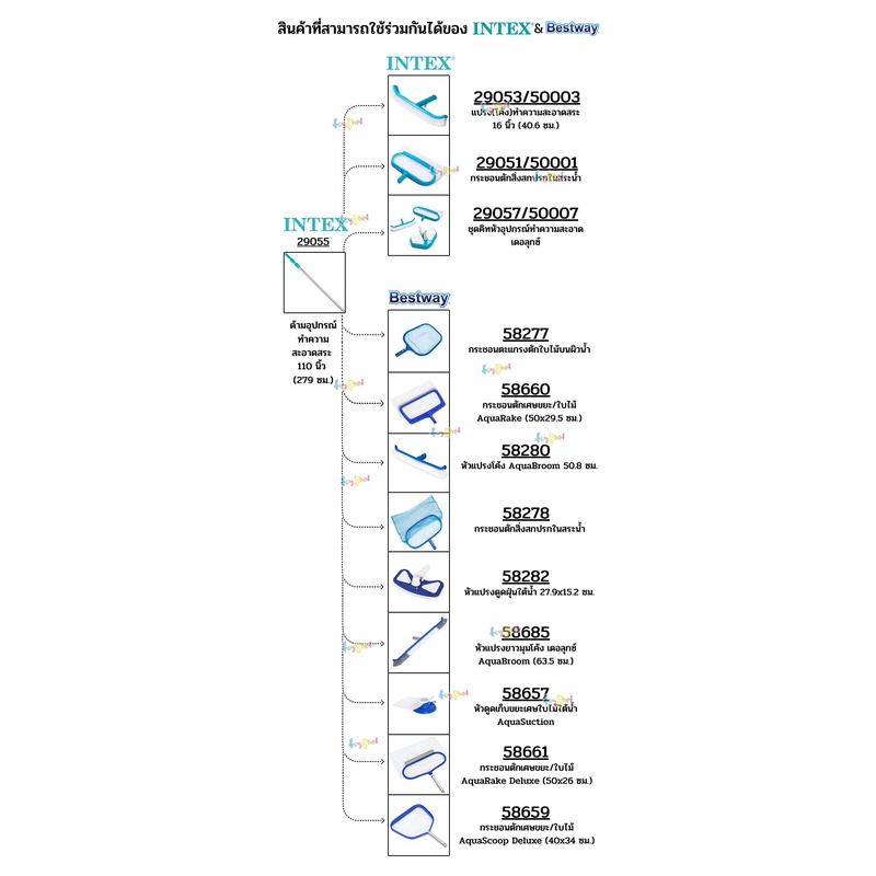Intex ส่งฟรี ด้ามอุปกรณ์ทำความสะอาดสระ 110 นิ้ว (279 ซม.) รุ่น 29055