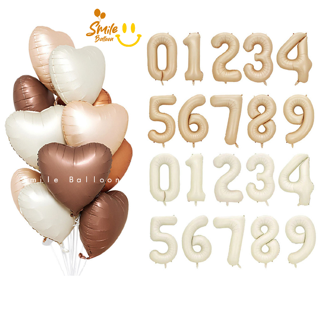 (พร้อมส่งด่วน) ลูกโป่งฟอยล์ตัวเลข 32 นิ้ว 40 นิ้ว สีครีม สีคาราเมล ลูกโป่งตัวเลข 32" 40" ใช้ตกแต่งวันเกิด