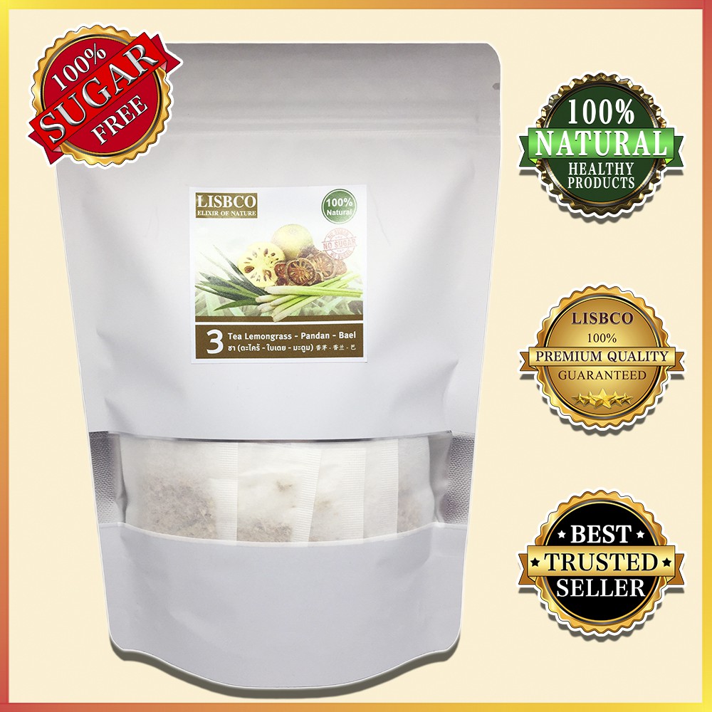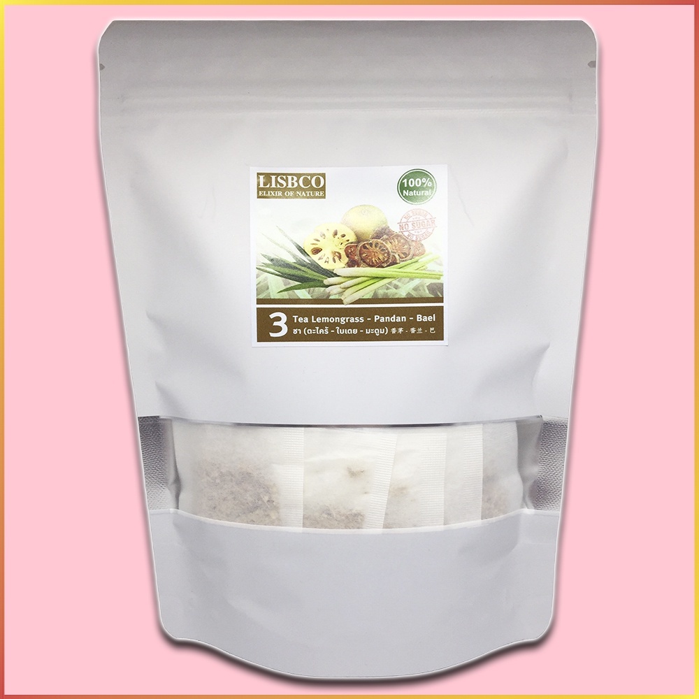 ชาสมุนไพร ชาตะไคร้ ใบเตย มะตูม ซอง 100 ชิ้น Lemongrass Pandan Bael Herbal Drink 100 pcs Tea Bags