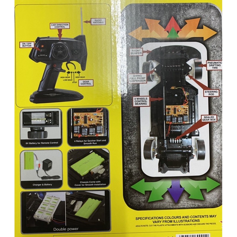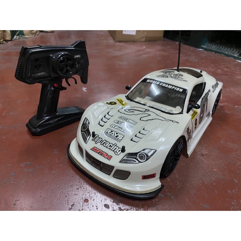 รถบังคับวิทยุดริฟเทอร์โบ1:10 4WD ขับเคลื่อนสี่ล้อ 35km/h มีไฟที่ล้อแบตเตอรี่สองก้อนปกรณ์พร้อมเล่น