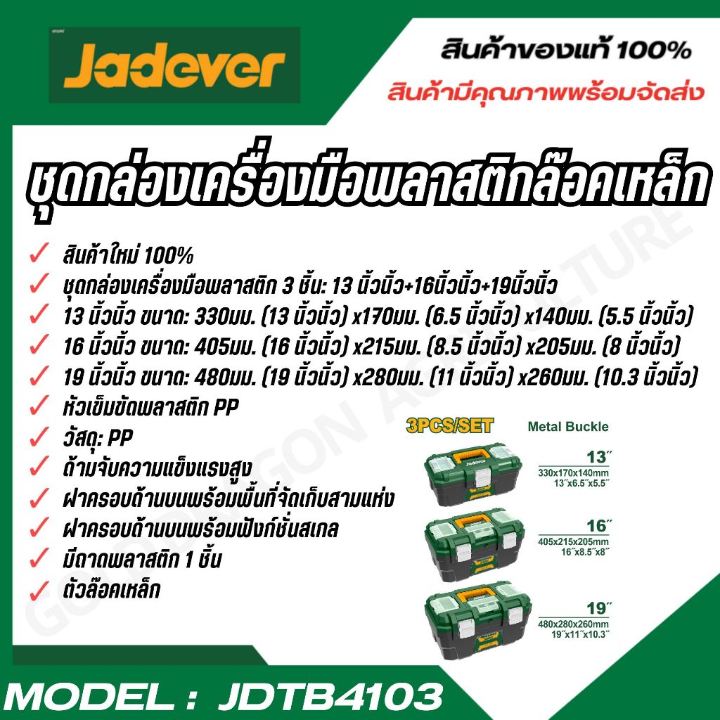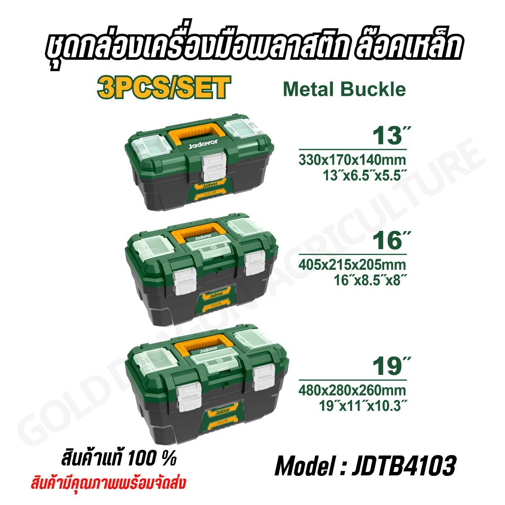 JADEVER ชุดกล่องเครื่องมือพลาสติก ตัวล็อกเหล็ก JDTB4103 (13 นิ้ว + 16 นิ้ว + 19 นิ้ว)
