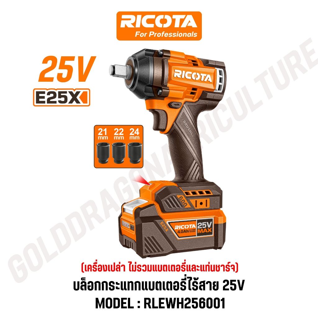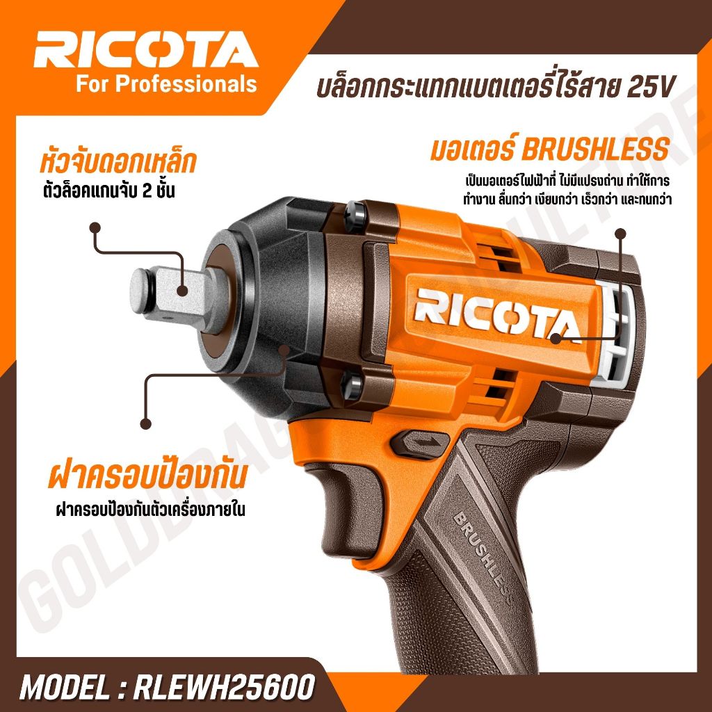RICOTA บล็อกกระแทกแบตเตอรี่ไร้สาย 25V 600 Nm ปรับความเร็ว 3 ระดับ รุ่น RLEWH25600 RLEWH256001