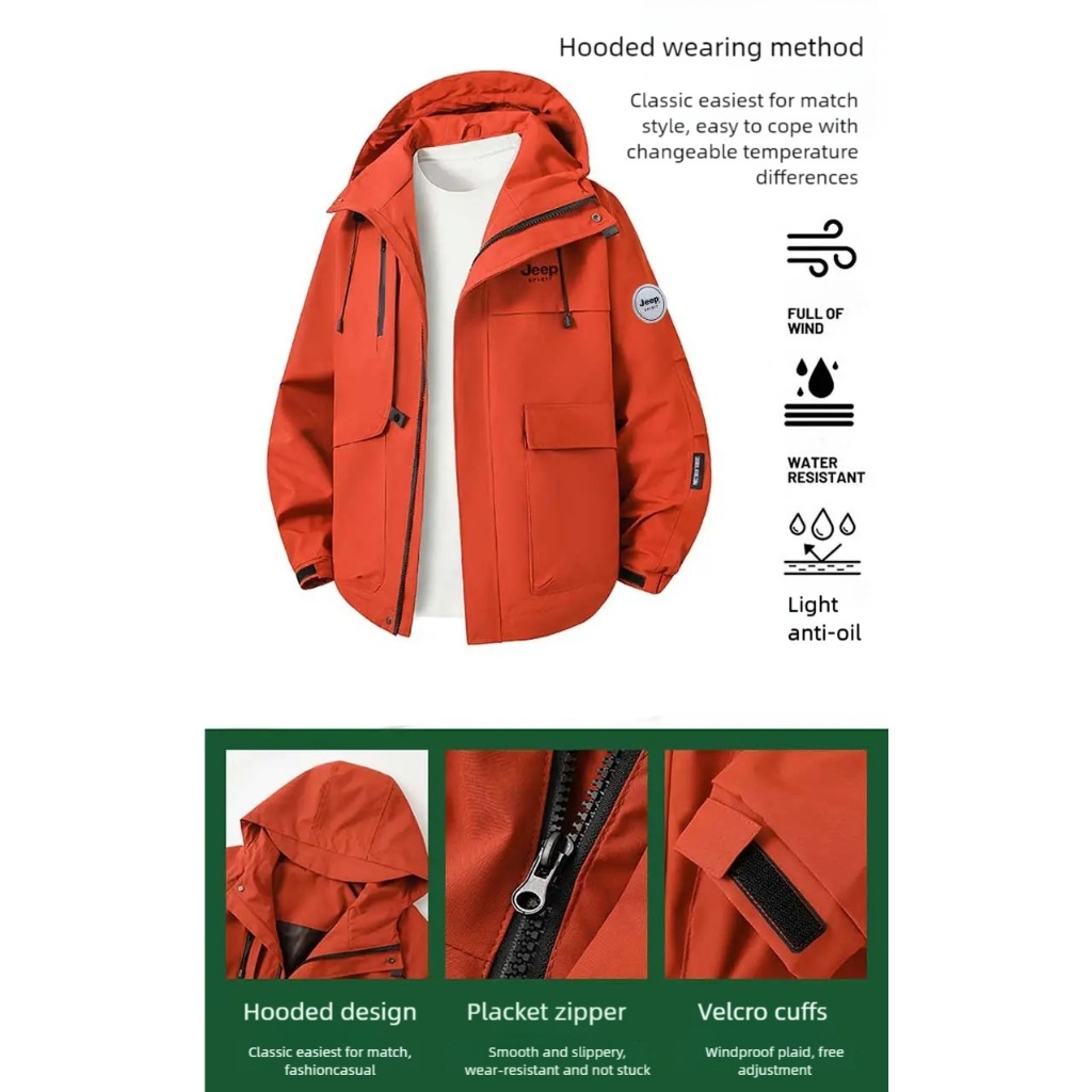 JEEP SPIRIT 1941 ESTD Charge Coat ฤดูใบไม้ร่วงและฤดูหนาวใหม่กลางแจ้งฤดูใบไม้ผลิและฤดูใบไม้ร่วง Non หมวกแบบถอดได้กันน้ํากันลมและระบายอากาศ
