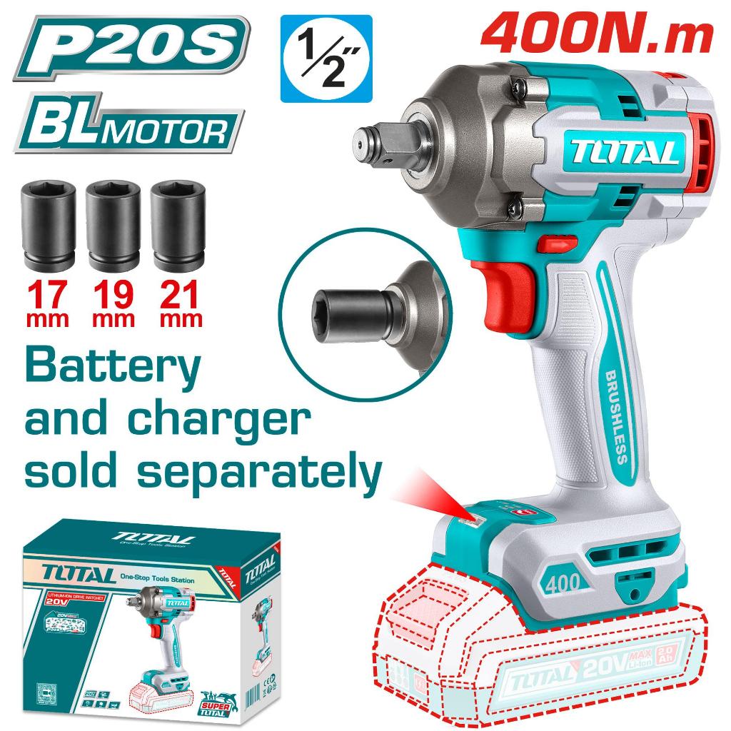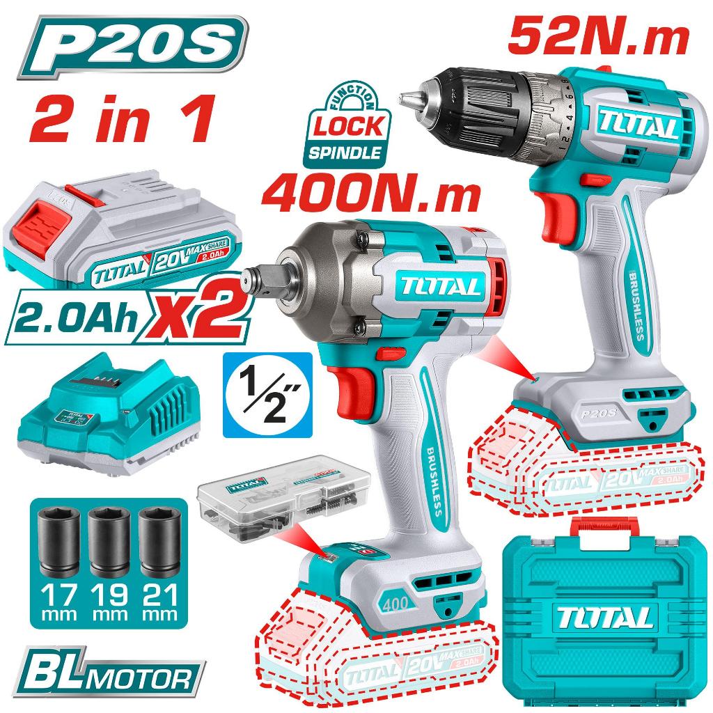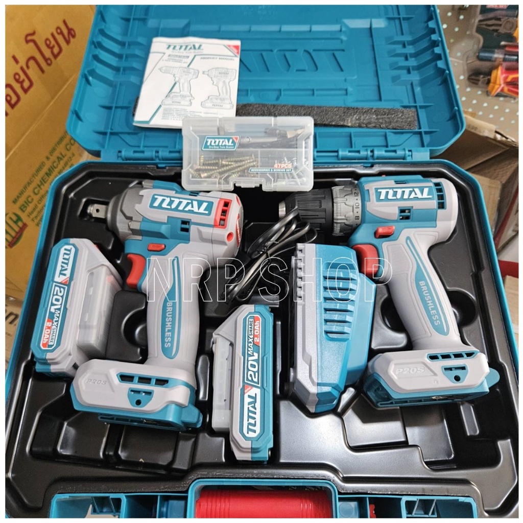 Combo Set TOTAL รุ่น TCKLI20271ชุดสว่านไร้สาย+บ็อกแบตไร้สาย 20 V พร้อมอุปกรณ์ครบชุด+แบตเตอรี่ 2 แอมป์ 2 ก้อน+แท่นชาร์จ