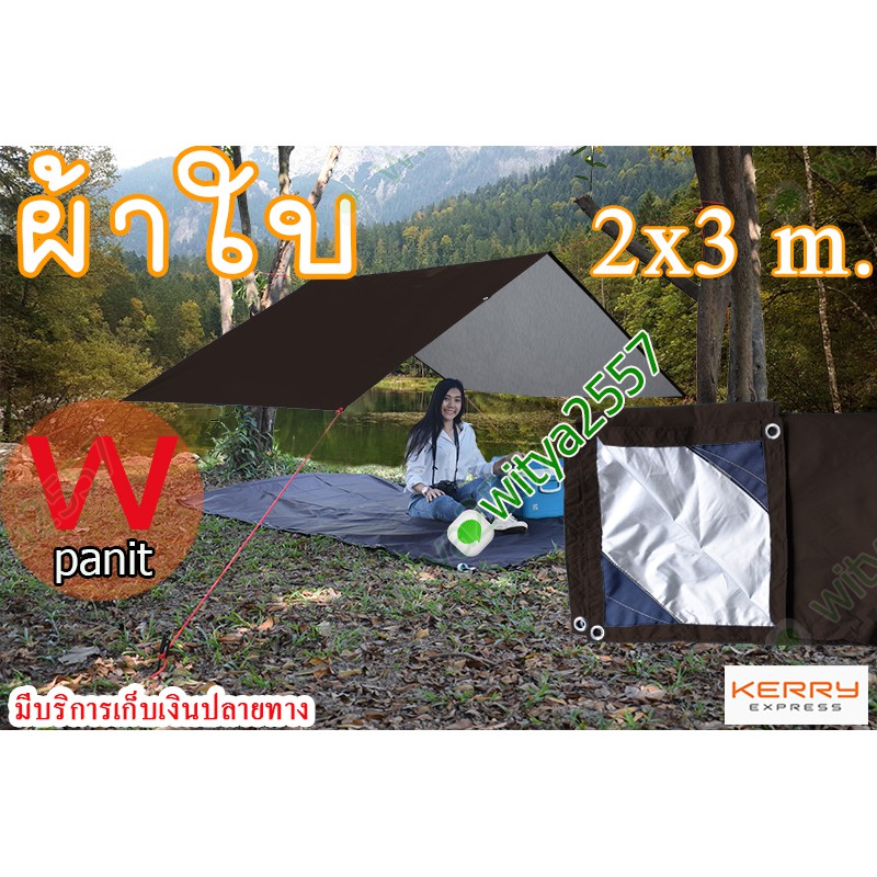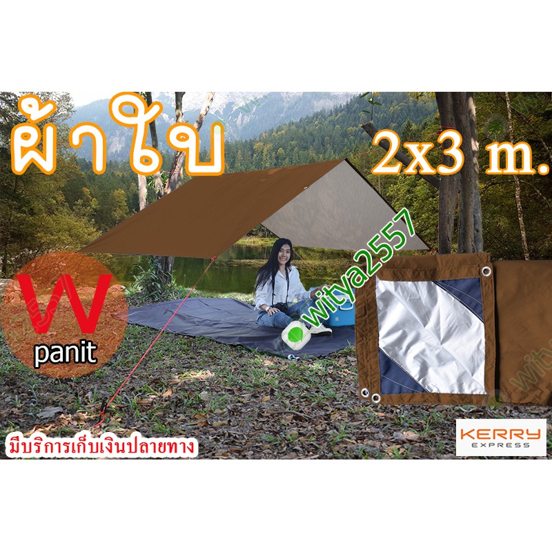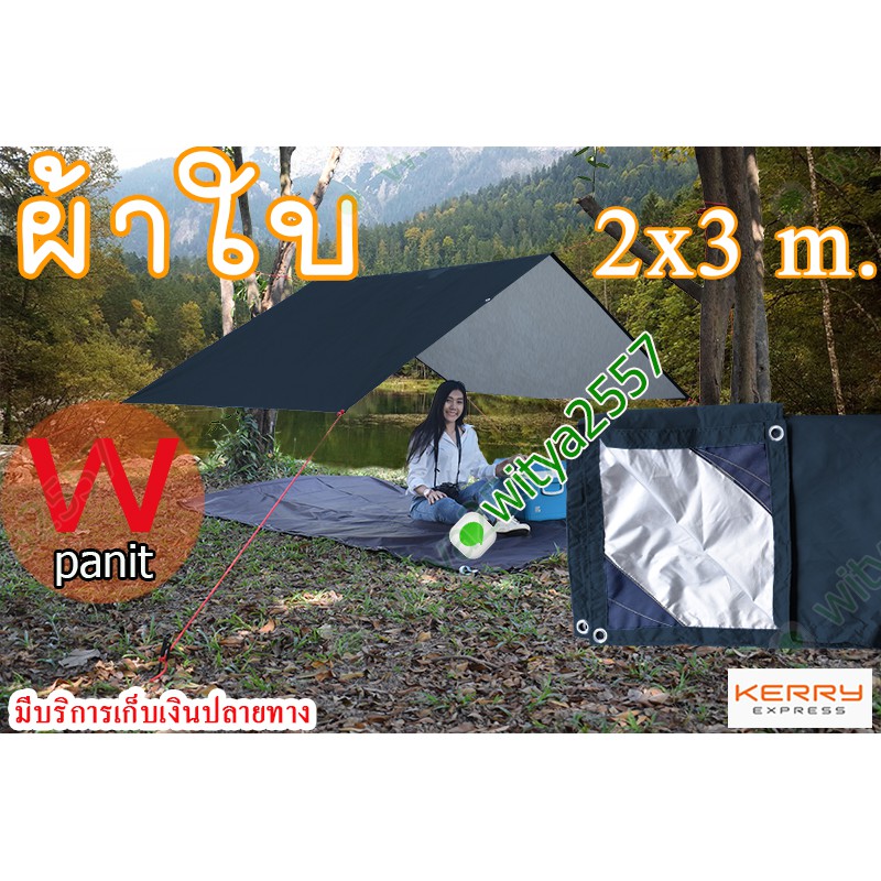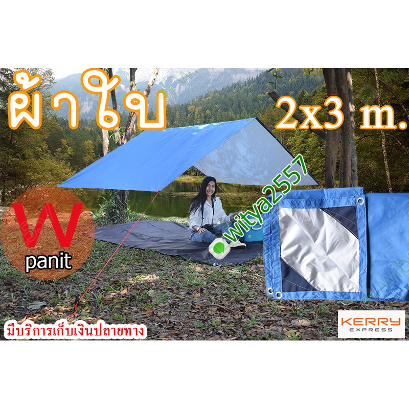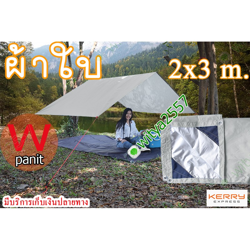 ผ้าใบกันฝน และแสงแดดขนาด 2x3 m. ฟลายชีท เจาะตาไก่ทุก ระยะ1เมตรรอบผืน ผ้า210Dแท้ เคลือบกันน้ำ รับบริการตัดตามขนาด
