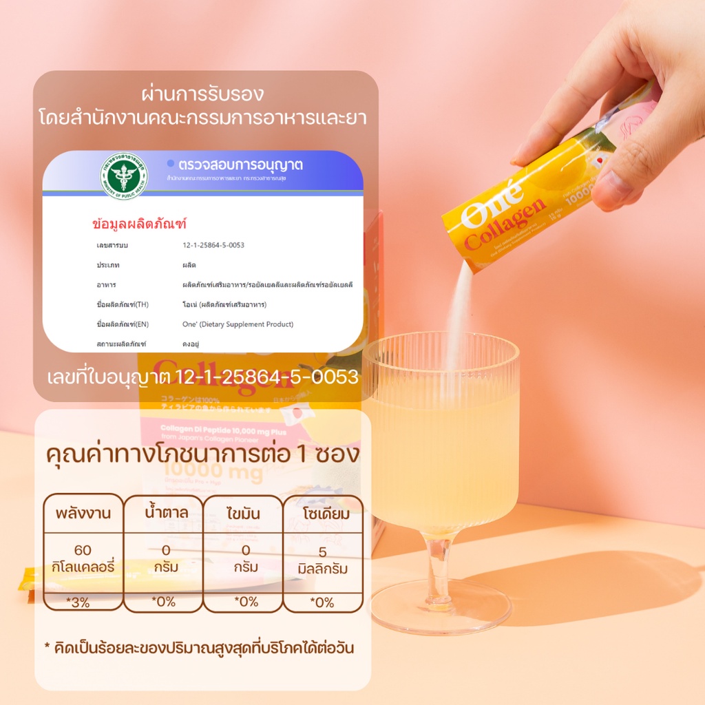 โอเน่ คอลลาเจน (One’ Collagen) คอลลาเจน ไดเปปไทด์ 10,000 มิลลิกรัม 12 กล่อง 120 ซอง