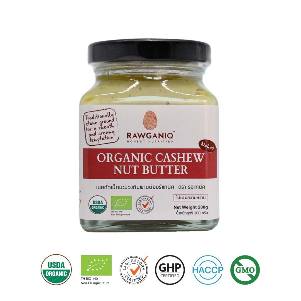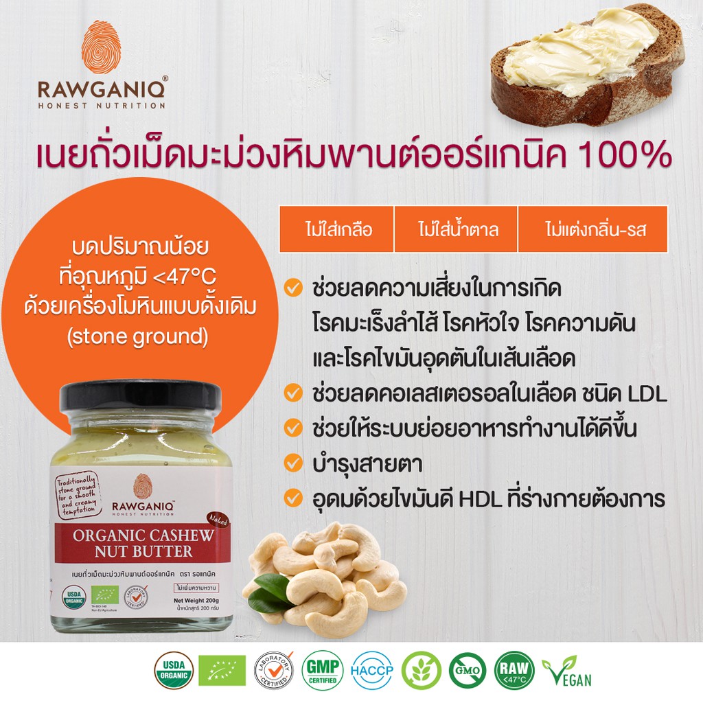 เนยถั่วเม็ดมะม่วงหิมพานต์ออร์แกนิค 200g มีอย.ไม่ใส่น้ำตาล/เกลือ มีใบรับรองออร์แกนิค Organic Cashew Nut Butter (USDA,EU)