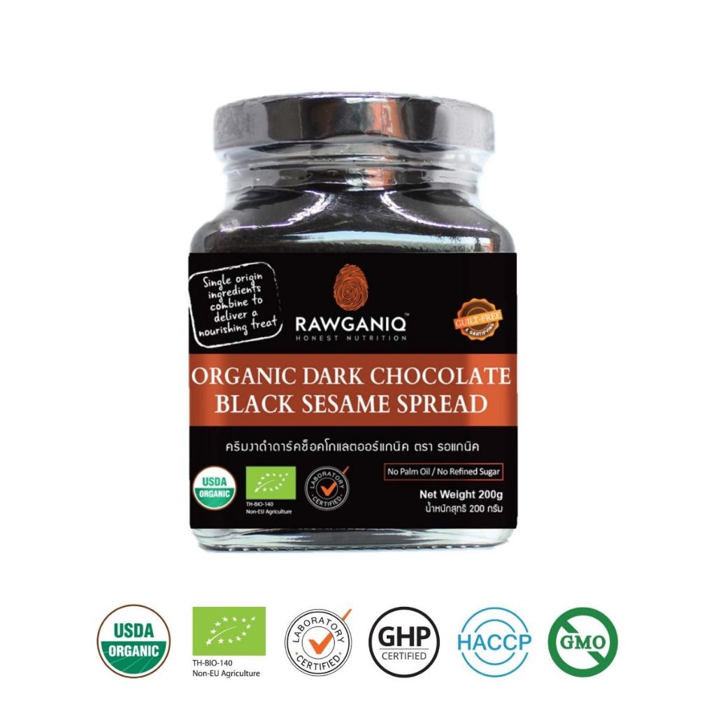 ครีมงาดำ ดาร์คช็อคโกแลต ออร์แกนิค 200g หวานน้อย มีอย. มีใบรับรองออร์แกนิค Organic Dark Chocolate Black Sesame Spread