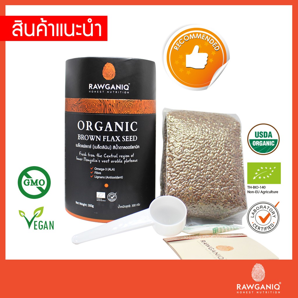 เมล็ดแฟลกซ์สีน้ำตาลออร์แกนิค (แบบเต็มเมล็ด ยังไม่ผ่านการบด) 300g Organic Brown Flax Seed (Whole Seed) USDA,EU