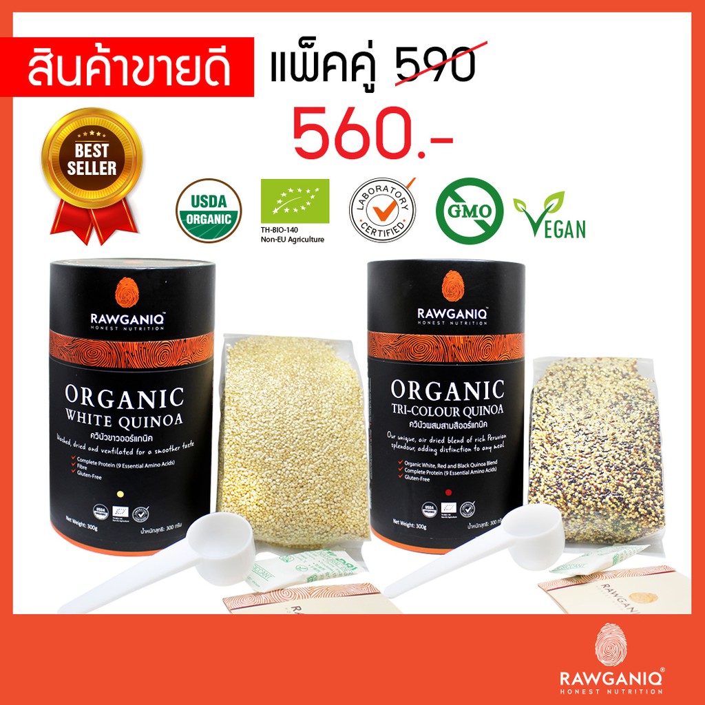 แพ็คผสม ควินัวขาว+ควินัวสามสี นำเข้าเกรดA มีผลแลป อย. มีใบออร์แกนิค (USDA,EU)