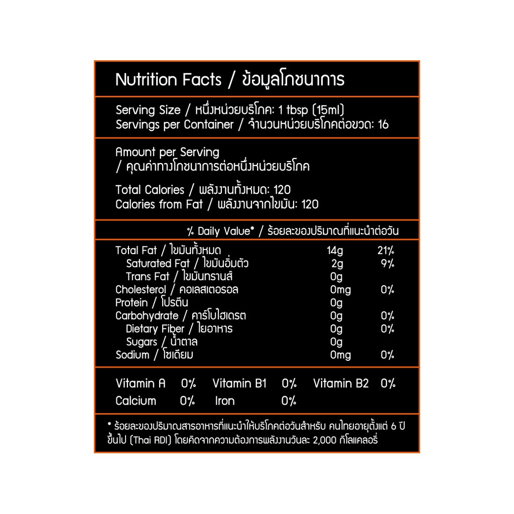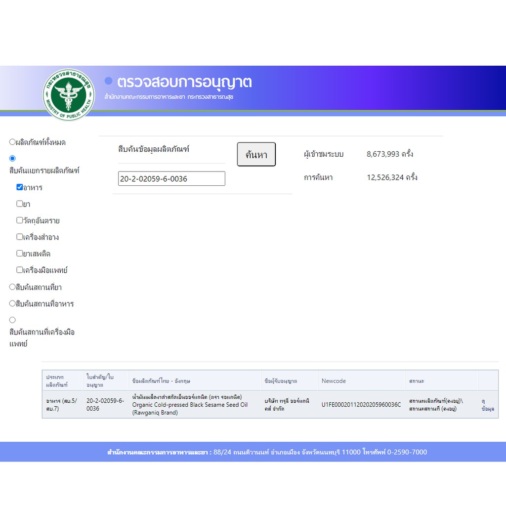 น้ำมันเมล็ดงาดำสกัดเย็นออร์แกนิค ไม่ผ่านกรรมวิธี ไม่กรอง 275 มล.Organic Extra Virgin Black Sesame Seed Oil, Cold Pressed