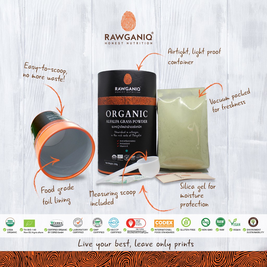 ผงหญ้าอัลฟาฟ่าออร์แกนิค มีผลแลป มีใบรับรองออร์แกนิค Organic Alfalfa Grass Powder (USDA, EU certified)