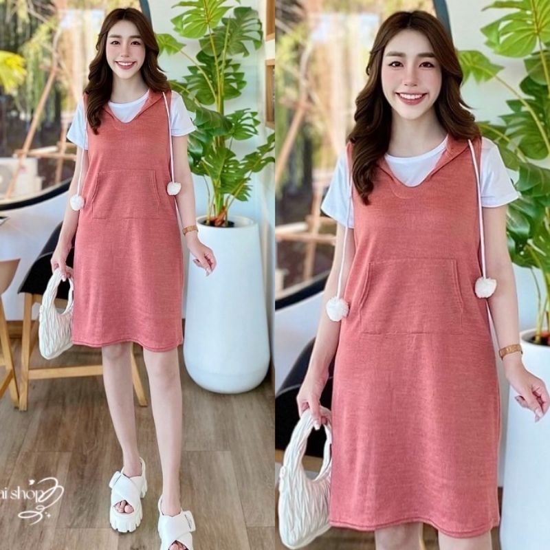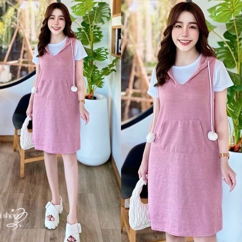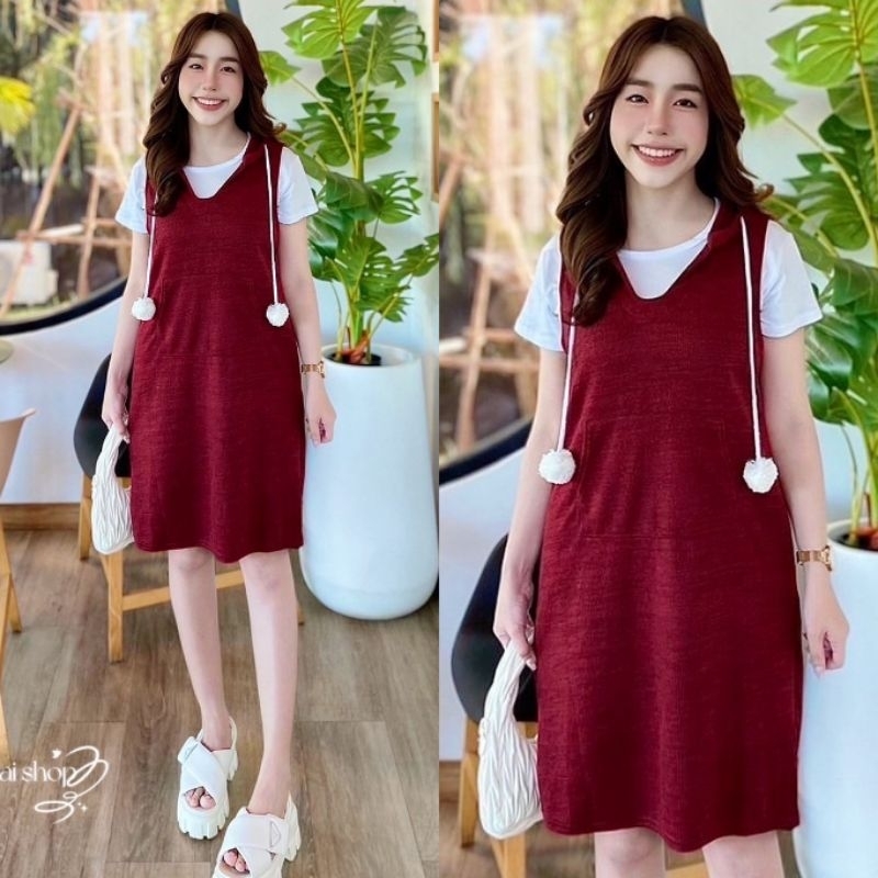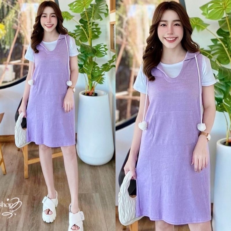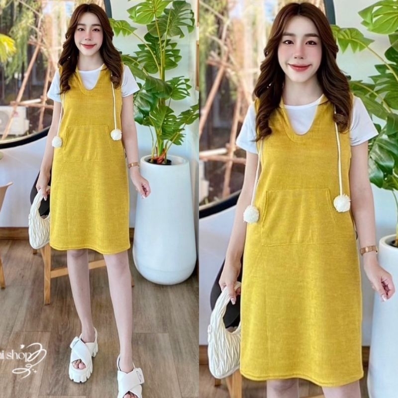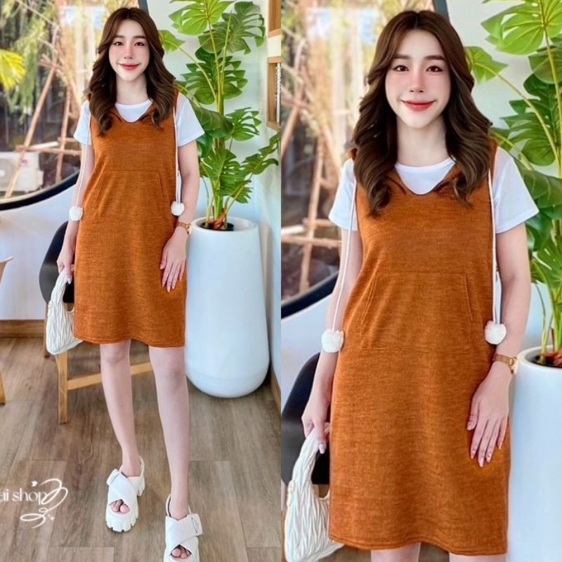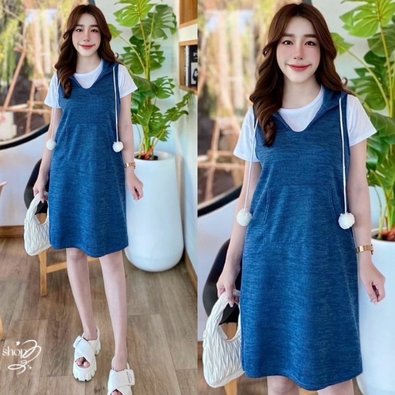 เอี๊ยมกระโปรงมาพร้อมเสื้อยืดสีขาวเนื้อผ้านิ่มมากๆ