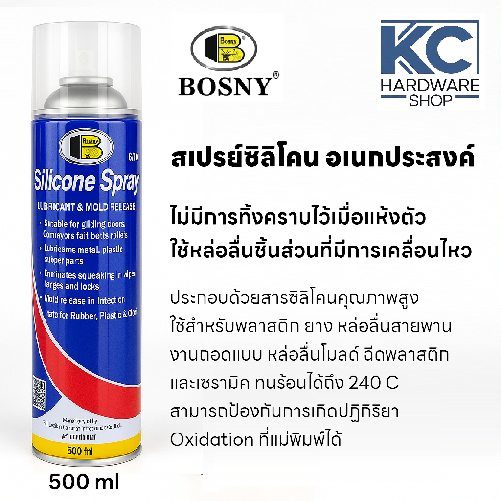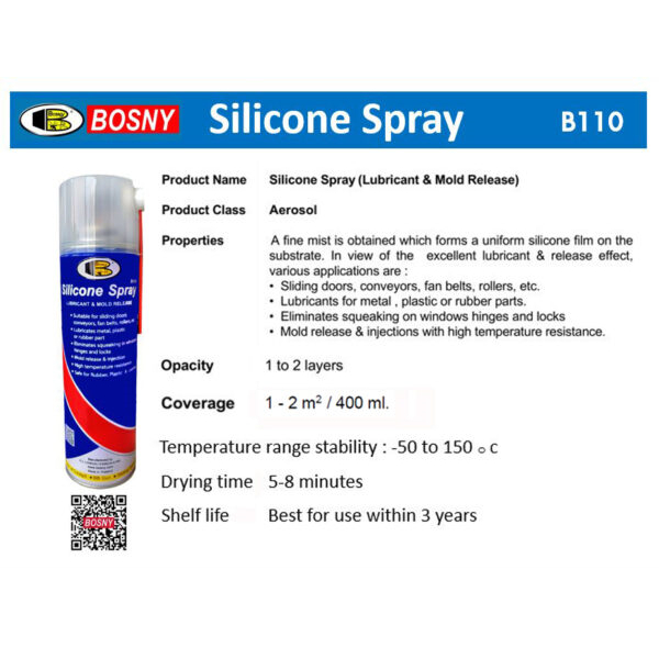 สเปรย์ซิลิโคนหล่อลื่น BOSNY B110 หล่อลื่นลื่น ไม่ทำร้ายยาง ใช้กับยาง พลาสติก ใช้ได้ทั้งงานช่างและซ่อมบ้าน