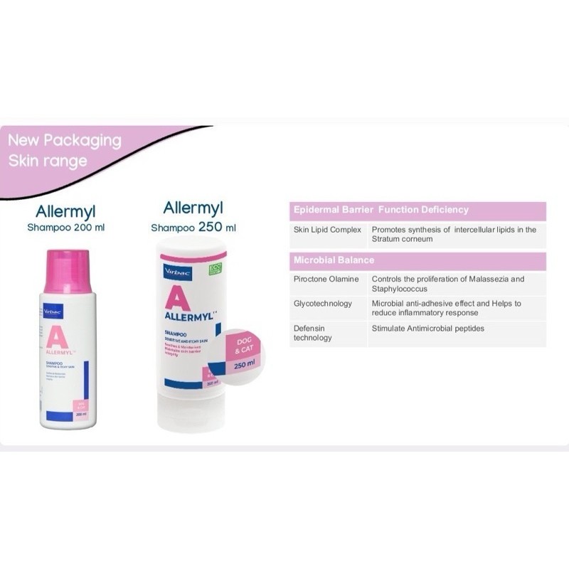 Allermyl Shampoo 250 ml Virbac 🔥Exp.2027 แชมพูสูตรผิวหนังแพ้ง่าย บำรุงผิวหนัง สำหรับสุนัขและแมว