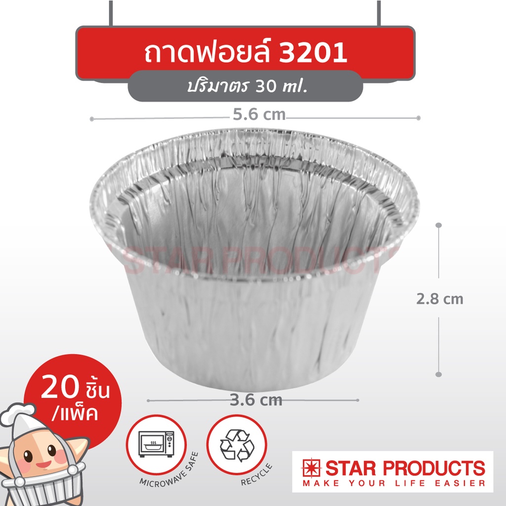 ถาดฟอยล์ ถ้วยฟอยล์ สตาร์โปรดักส์ 3201 มีฝา 20 ชุด/แพ็ค
