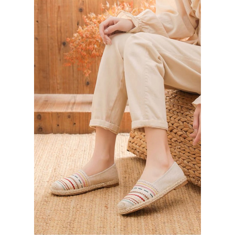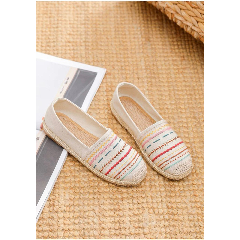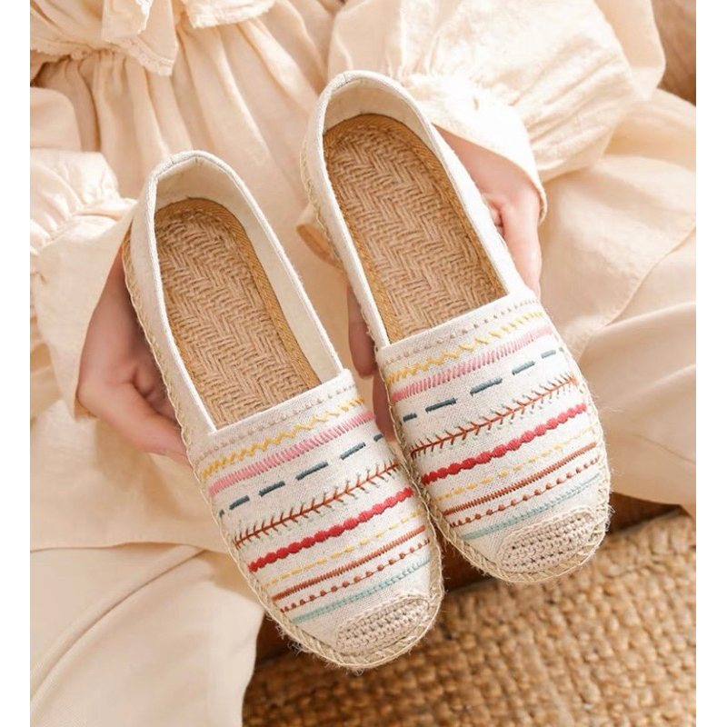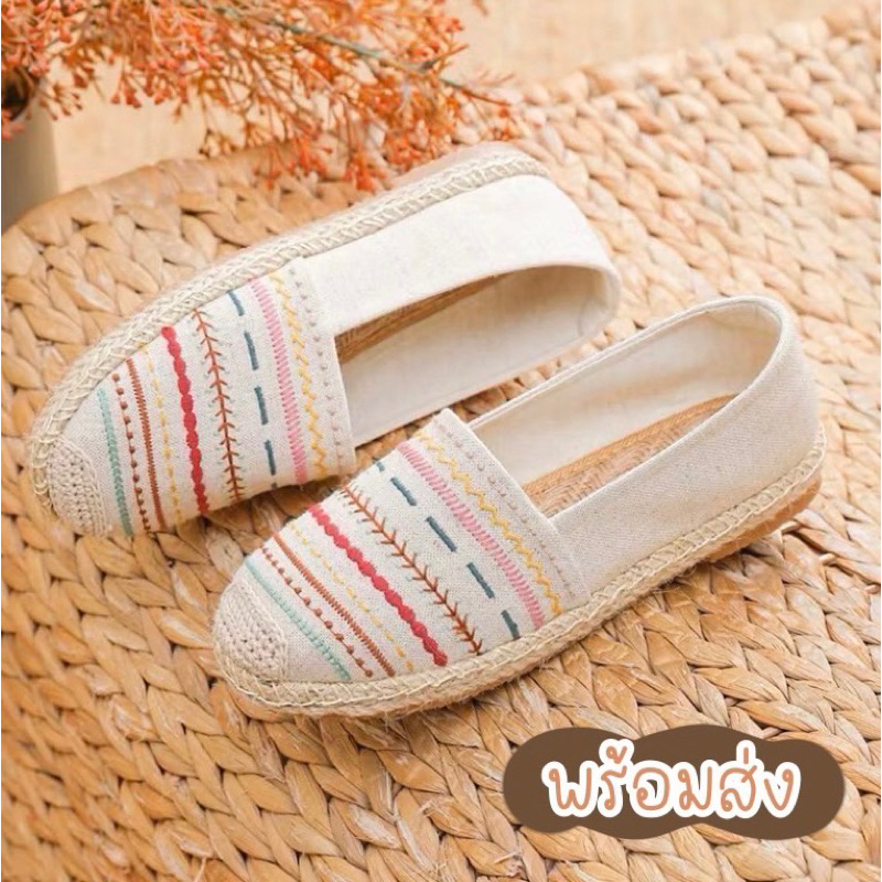 [พร้อมส่ง😊] รุ่น candy strip 🫧🍭รองเท้างานปักลายใหม่ลาสุด ปักลายเส้นบนผ้า เรียบๆ แต่น่ารัก (แถมถุงเท้า1คู่🧦)