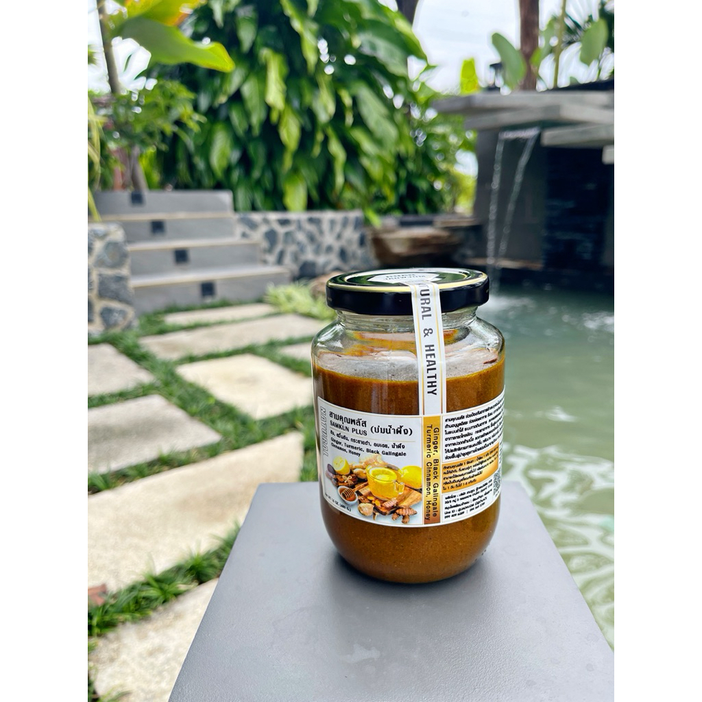 🔥สินค้าใหม่🔥 J509 สามคุณพลัส บ่มน้ำผึ้ง 480 ml. Sam Kun Plus | ลดการอักเสบ ขิง ขมิ้นชัน กระชายดำ อบเชย น้ำผึ้ง สามคุณ