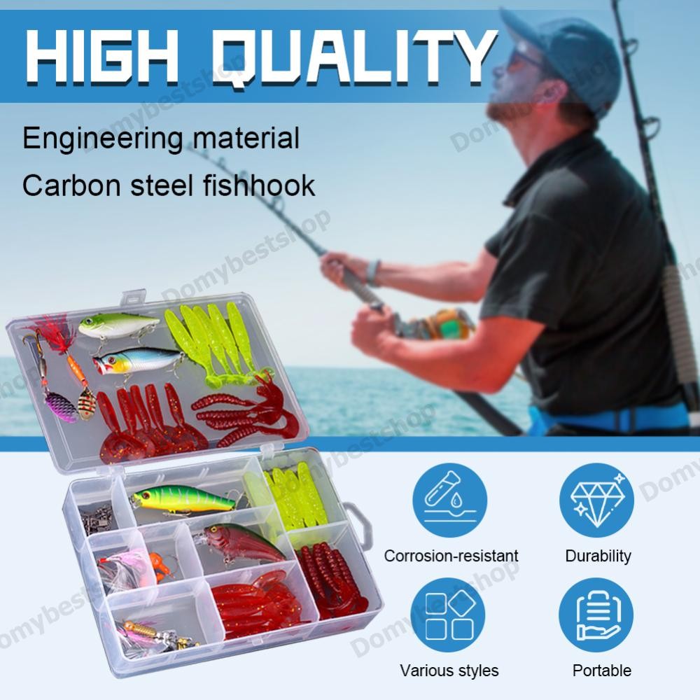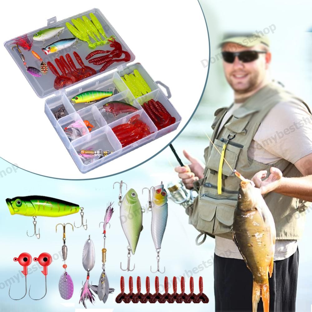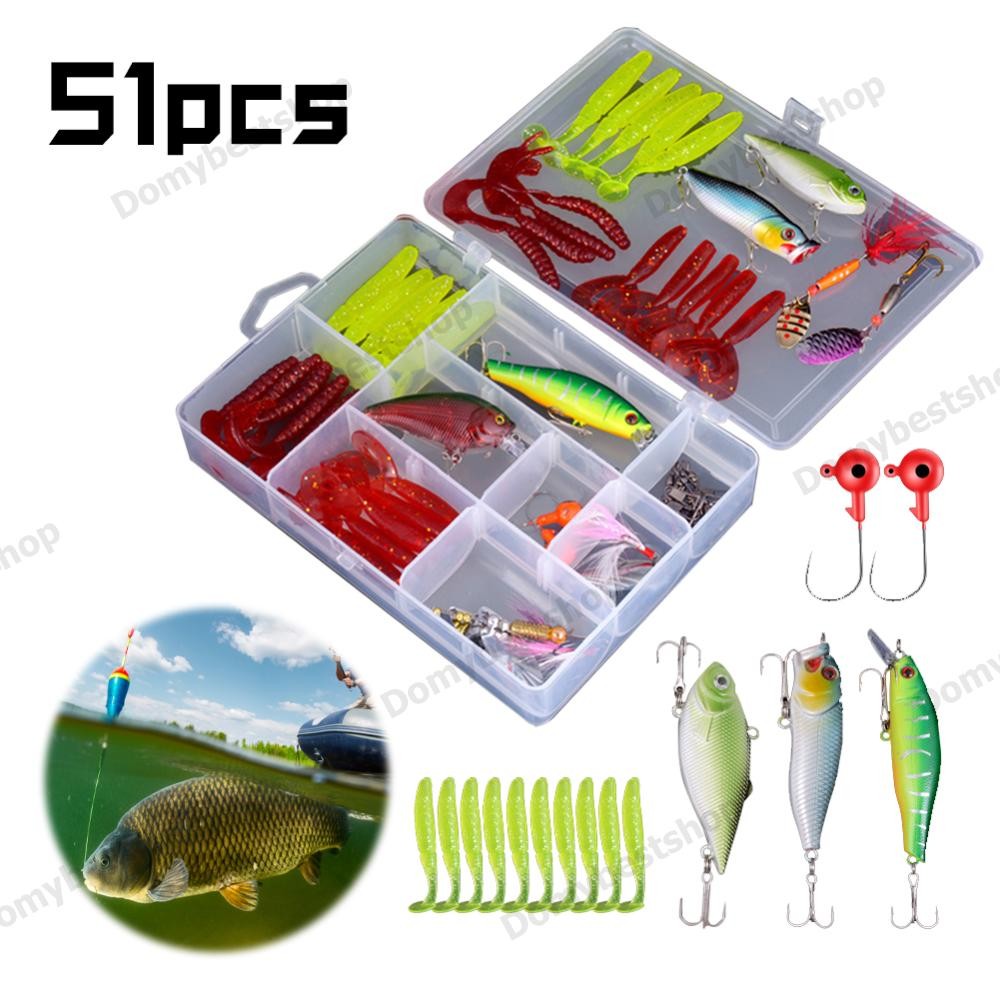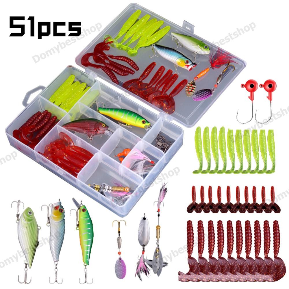 🚚 ชุดอุปกรณ์ตกปลา 51 ชิ้น พร้อมใช้ มีทั้งเหยื่อ Topwater, เครื่องมือและเหล็กคาร์บอน สำหรับการตกปลากลางแจ้ง