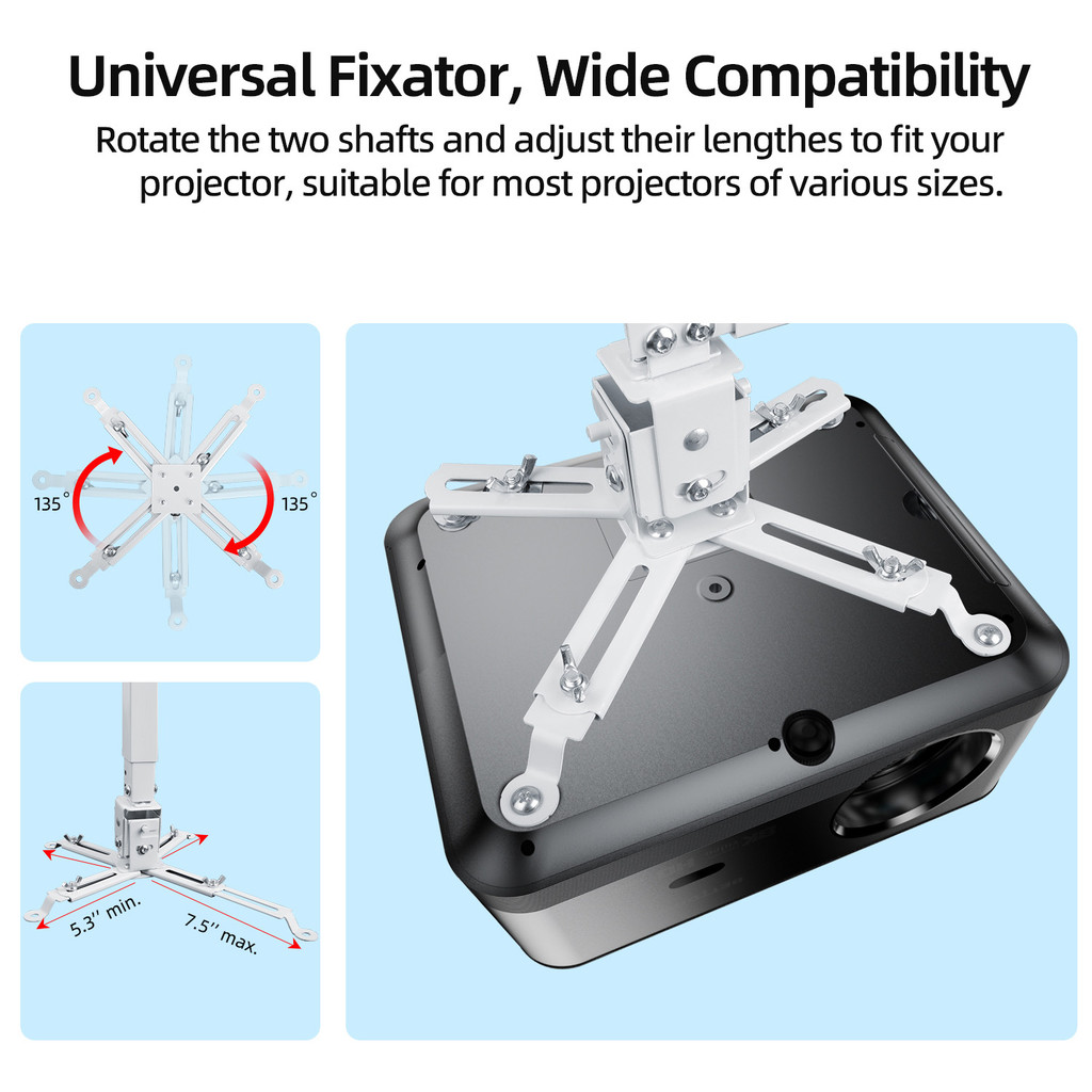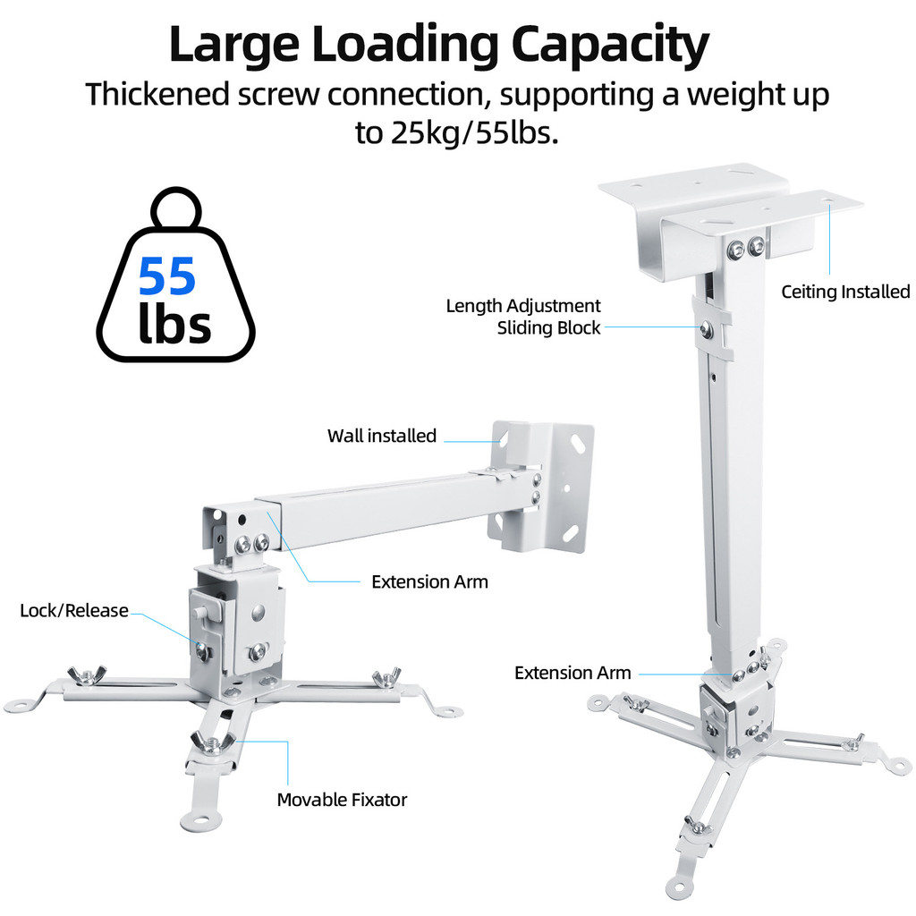 GOOJODOQ ขายึดโปรเจคเตอร์ 3-in-1 อเนกประสงค์: เพดานฟลัช, แขนยืดไสลด์, การติดตั้งติดผนัง - รองรับได้ถึง 55 ปอนด์