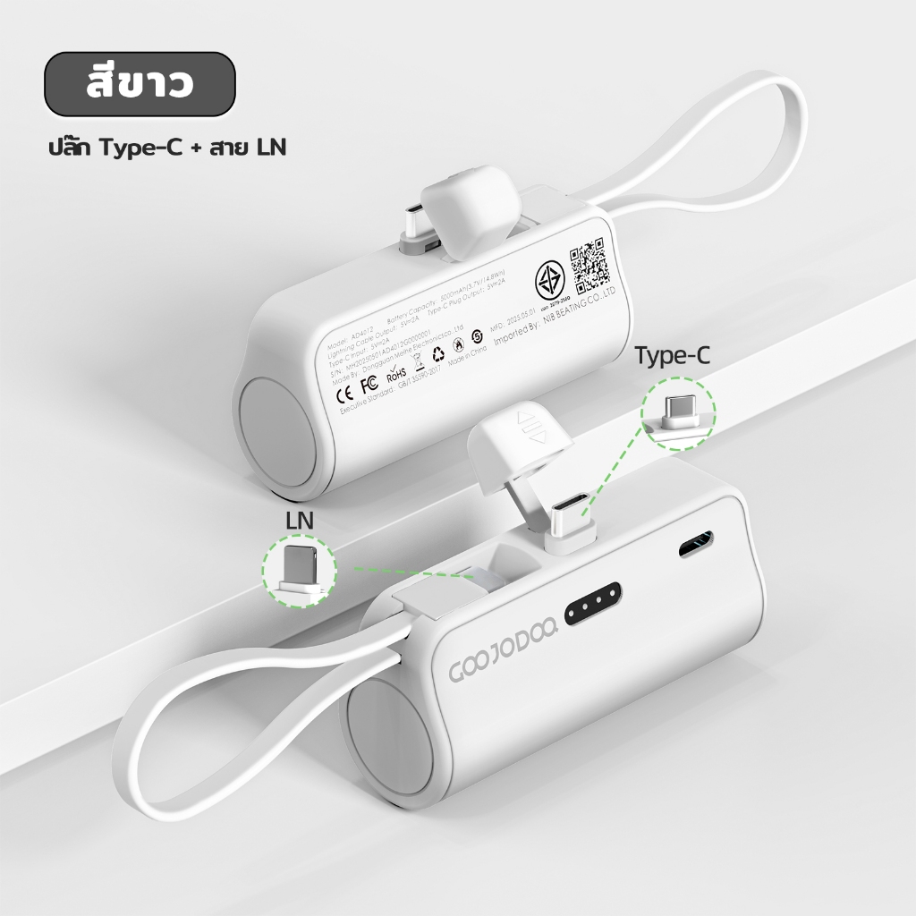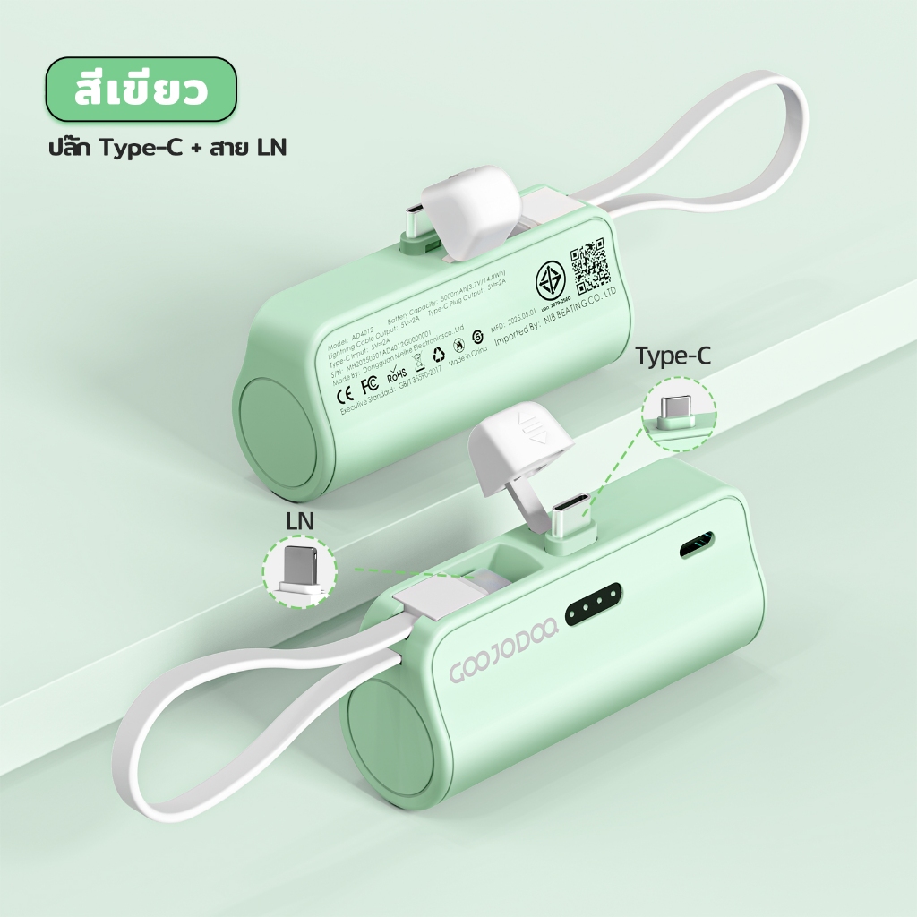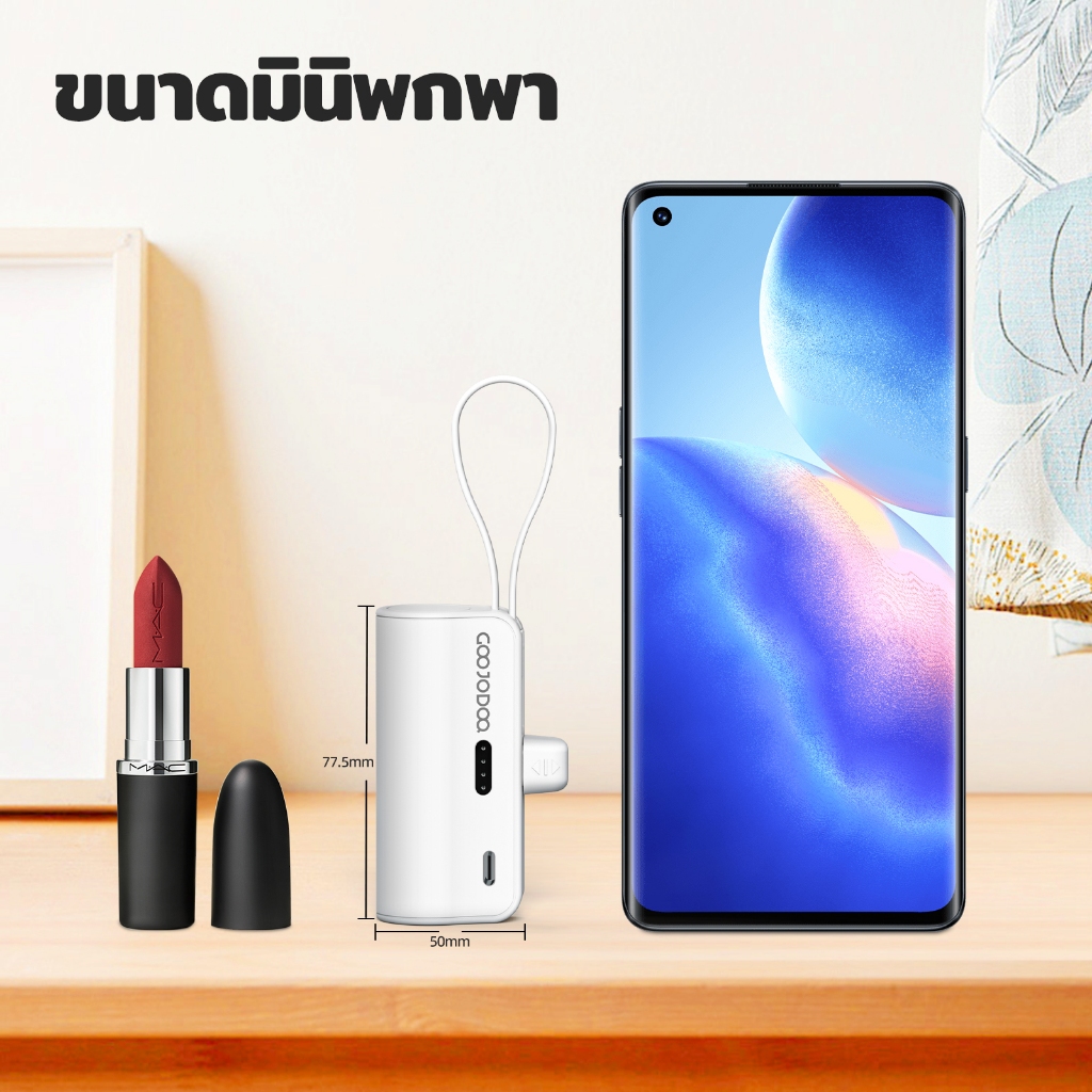 GOOJODOQ 5000mAh Mini Power Bank การชั่งน้ําหนักประมาณ 100 กรัมสายเคเบิล LN ในตัวและปลั๊ก Type-C ไร้สายเคเบิล