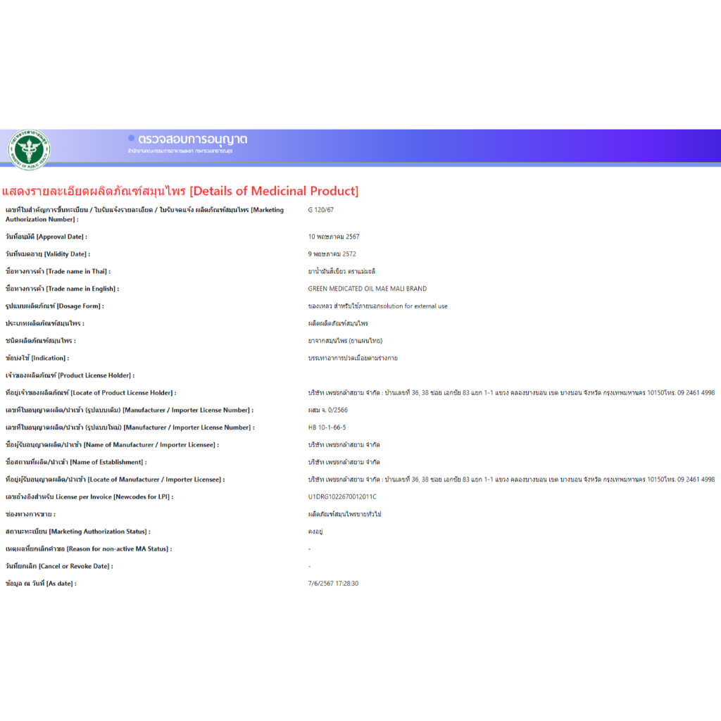 (12ขวด)5cc น้ำมันเขียวแม่มะลิ ขนาดพกพา5cc ของแท้ส่งตรงจากโรงงาน ขายจำนวน 12ขวด