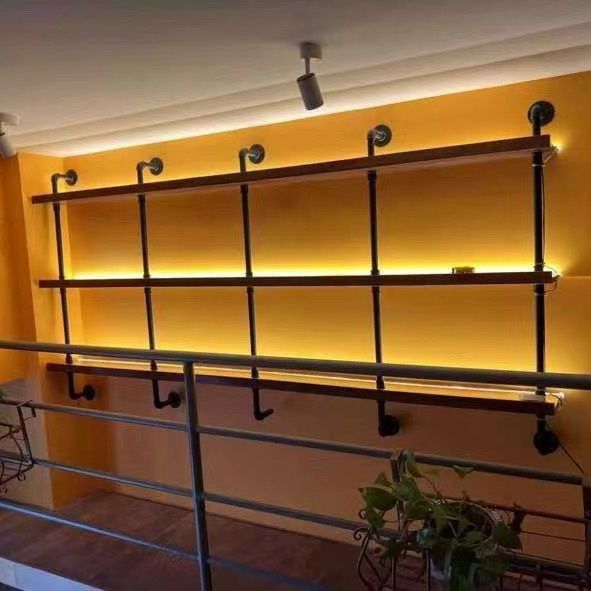 ชั้นวางหนังสือเหล็กติดผนังหลายชั้นไม้เนื้อแข็งชั้นเก็บห้องนอนห้องครัวชั้นเก็บจอแสดงผลที่เรียบง่าย