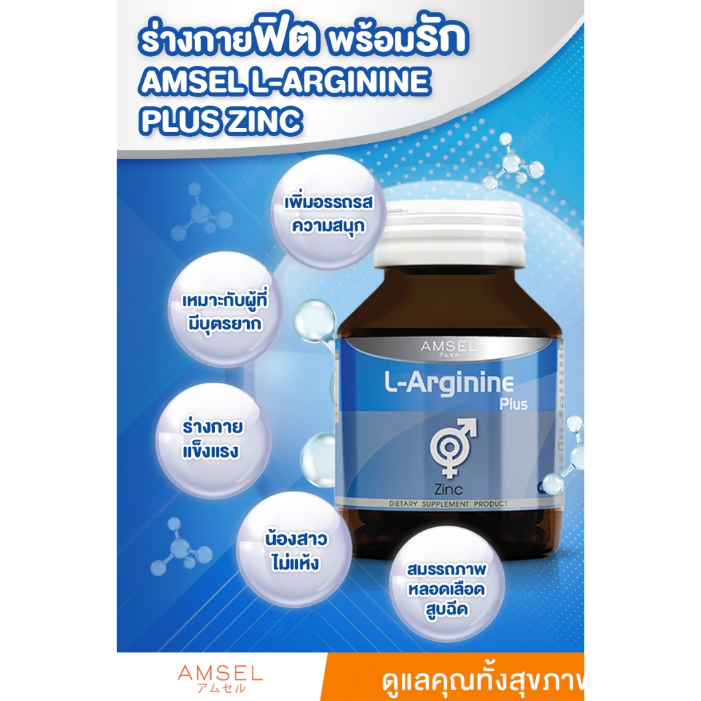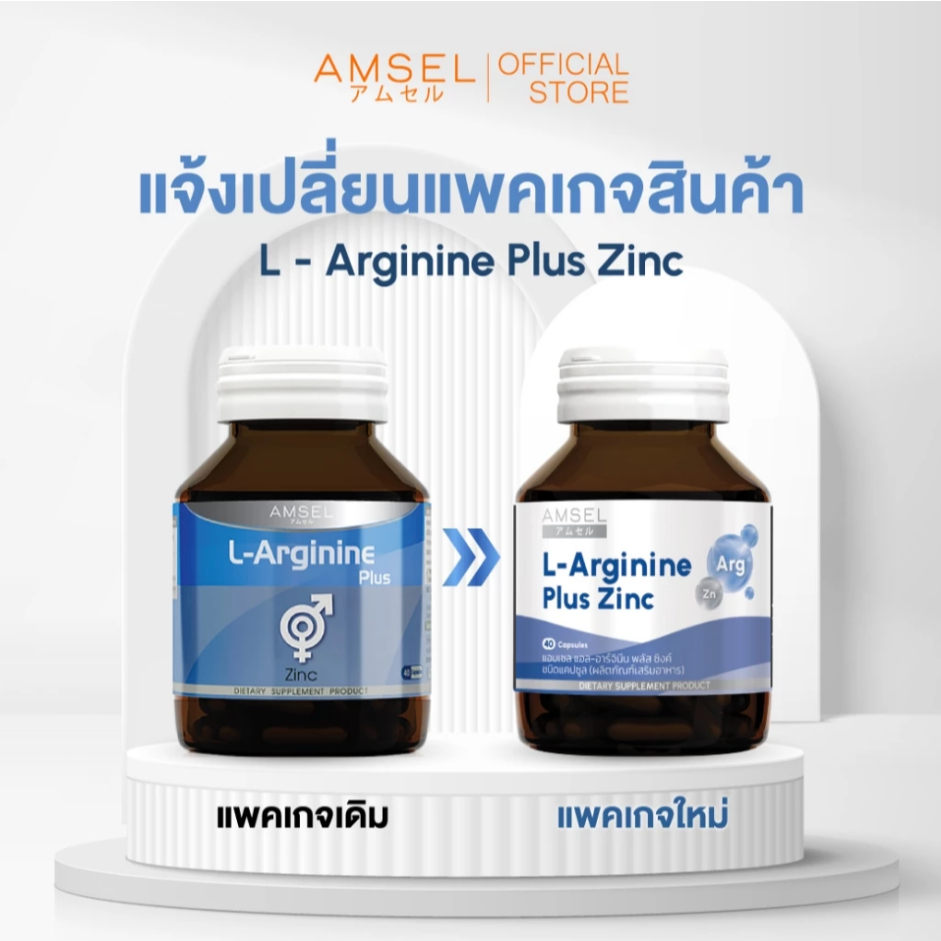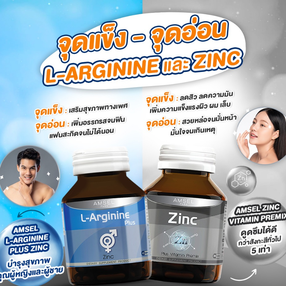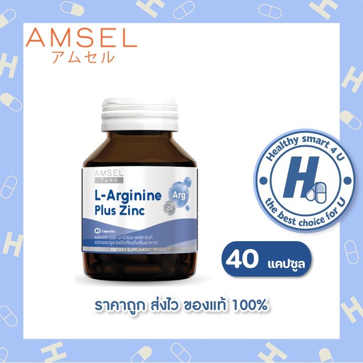 ((ของแท้ร้านยา)) Amsel L-Arginine Plus Zinc 40 Caps แอมเซล แอล-อาร์จีนีน พลัส ซิงค์ 40 แคปซูล