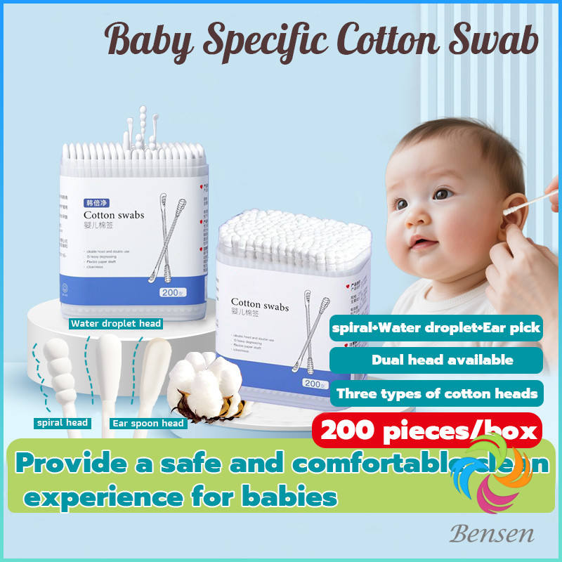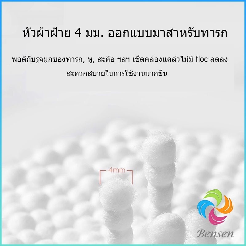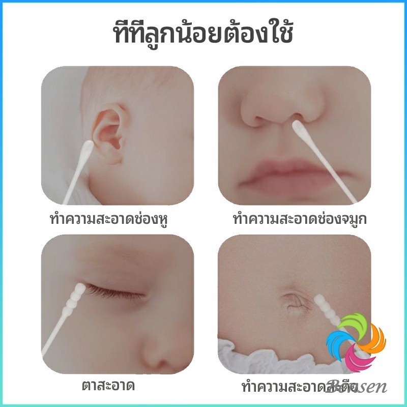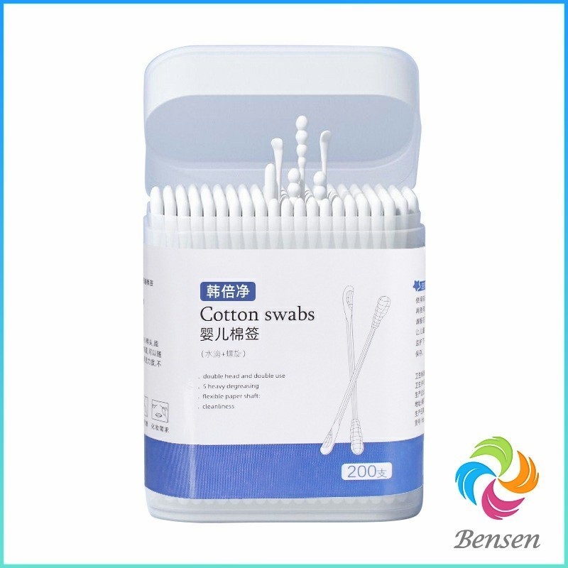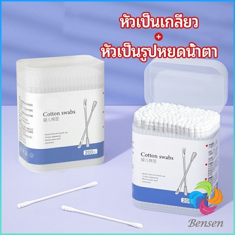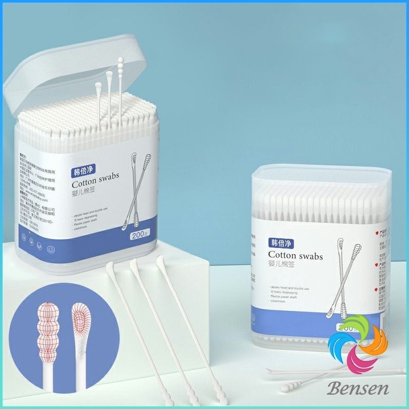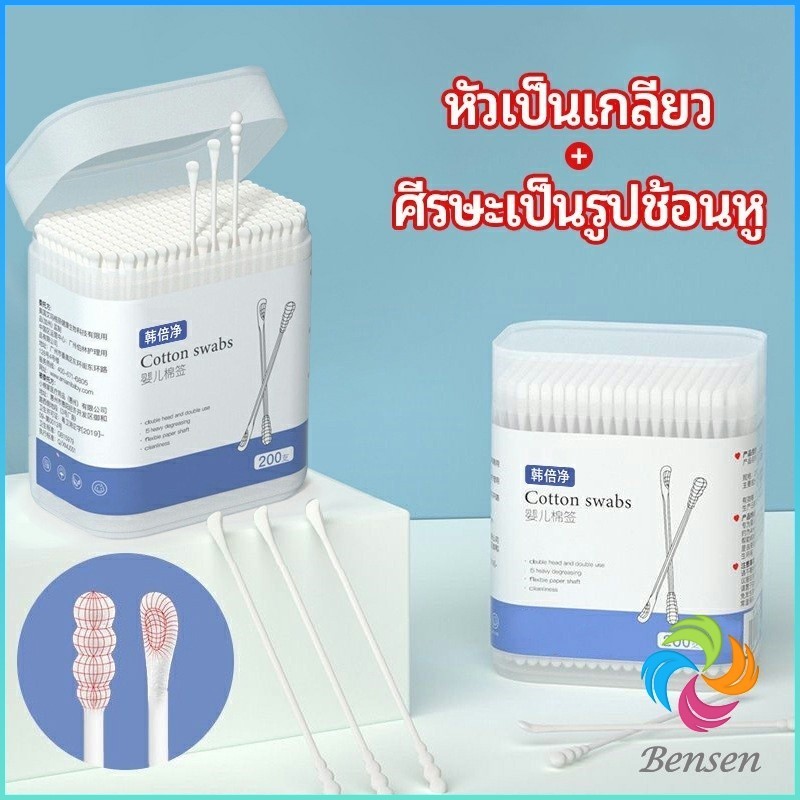 Bensen สำลีก้านทารก สำลี สำลีฆ่าเชื้อ สำลีก้านหู สำลีก้านคู่ กล่องละ200ไม้ baby cotton swab
