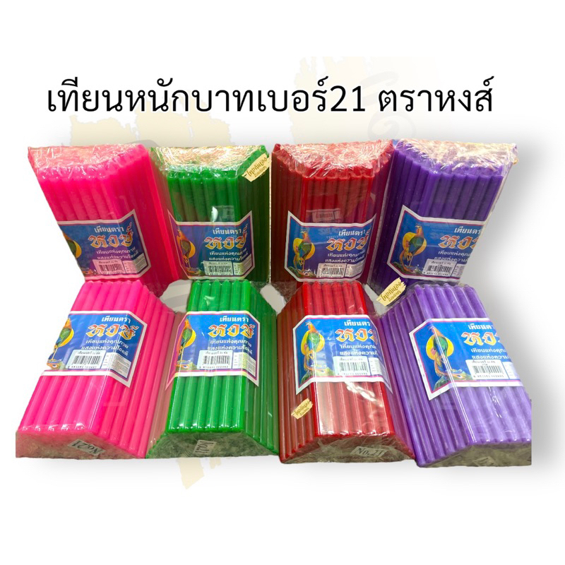 เทียนหนักบาท เบอร์21 เทียนสี เทียนดำ เทียนแดง เทียนเขียว เทียนม่วง เทียนชมพู เทียนตราหงส์