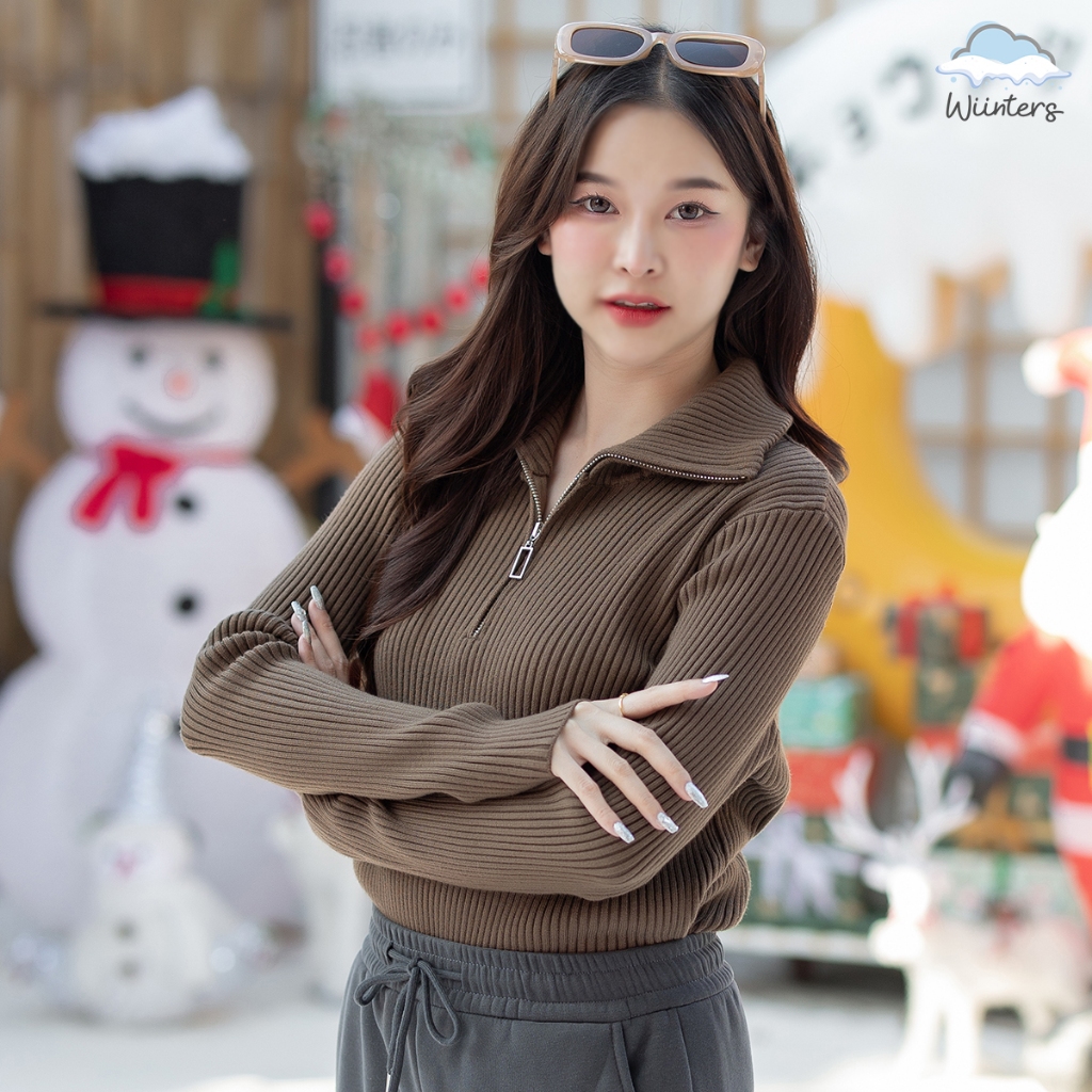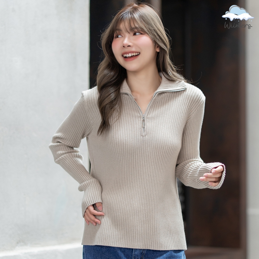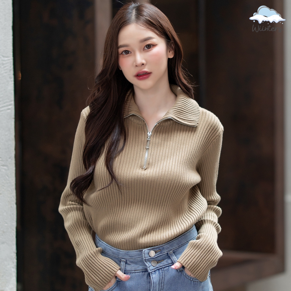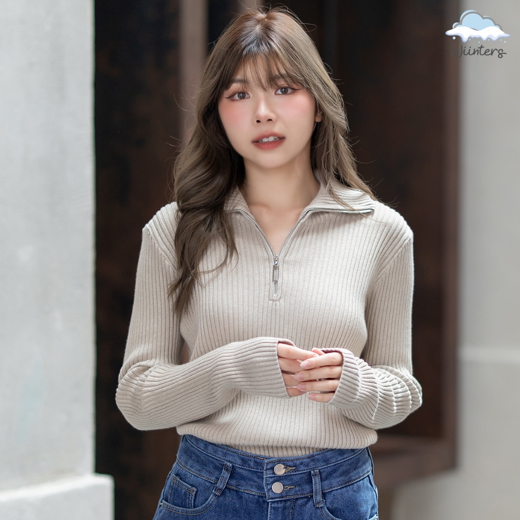 [ Marine Sweater - G12 ] 8 สี I สเวตเตอร์ เสื้อไหมพรม ผ้าร่อง เสื้อไหมพรมคอปก ตกแต่งซิป เปิด-ปิด ได้ กันหนาว